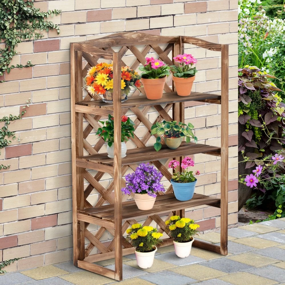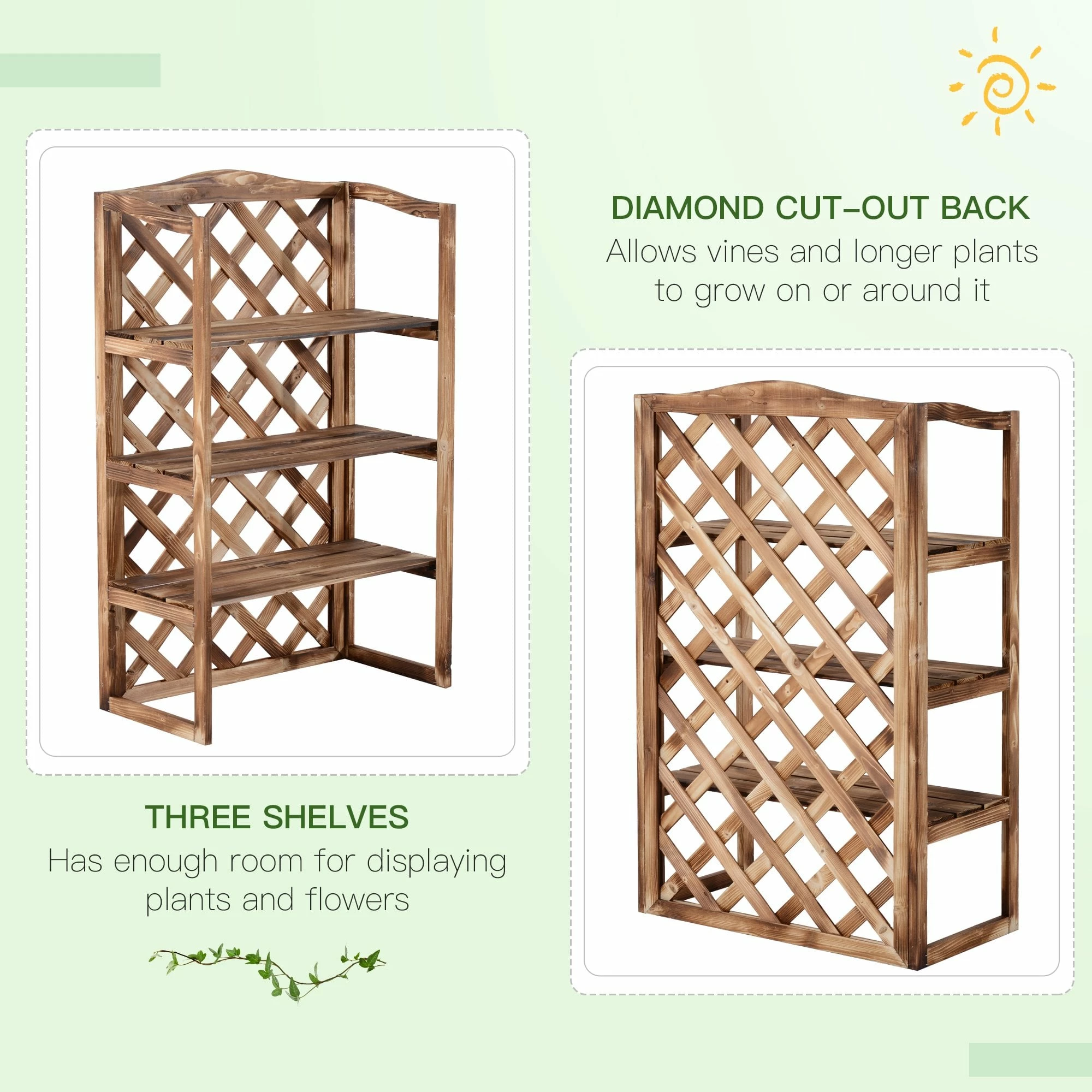 Give your potted plants and flowers their very own place to rest together with this freestanding shelf from Outsunny. Crafted from solid wood fir in a natural finish it is strong and rot-proof holding up to 50kg, perfect for storing lots of plants on it. The back is cut to a diamond cross design allowing leaves and vines to grow on and around it. It will look great placed anywhere in your home whether that be in the garden on your patio or even on your balcony.