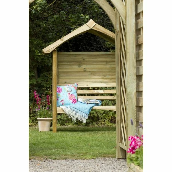 The arbour has a solid timber roof and back panel to keep you protected from any unexpected rain showers. The timber used has been Pressure Treated by the manufacturer to give it a 15 year guarantee against rot and fungal decay.