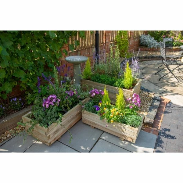 Brighten up a plain patio or empty decking area with a 3-in-1 planter set from Forest. The Durham Rectangular Planter set has a simple four sided design, natural timber finish and horizontal lines. The set contains 3 planters of decreasing size, they can hold a multitude of plants and flowers and when planted up as a set and positioned they’ll bring colour and interest to your garden.
