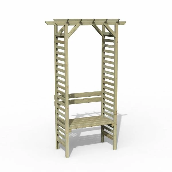 The popular slatted design and strong clean lines of this wooden arbour make this a striking garden seat. The pergola style top and slatted trellis sides are ideal for training your climbing plants. The single seat is the perfect place in which to relax and enjoy your garden.