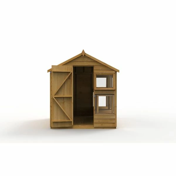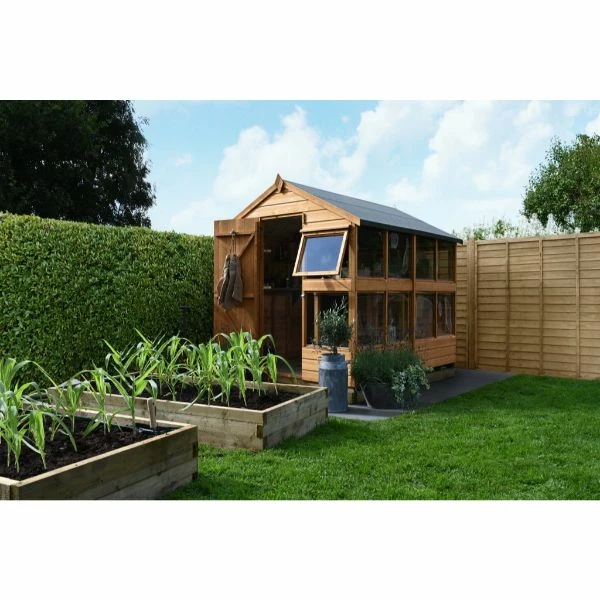 This Shiplap Tongue & Groove Dip Treated 8×6 Potting from Forest has a practical design and is built to last. This garden building will help keep your garden clutter free and offers a secure space for you to store garden equipment. Far more than just a storage space, this potting shed has been carefully designed to maximise the elements that are prime for planting, seeding and potting.