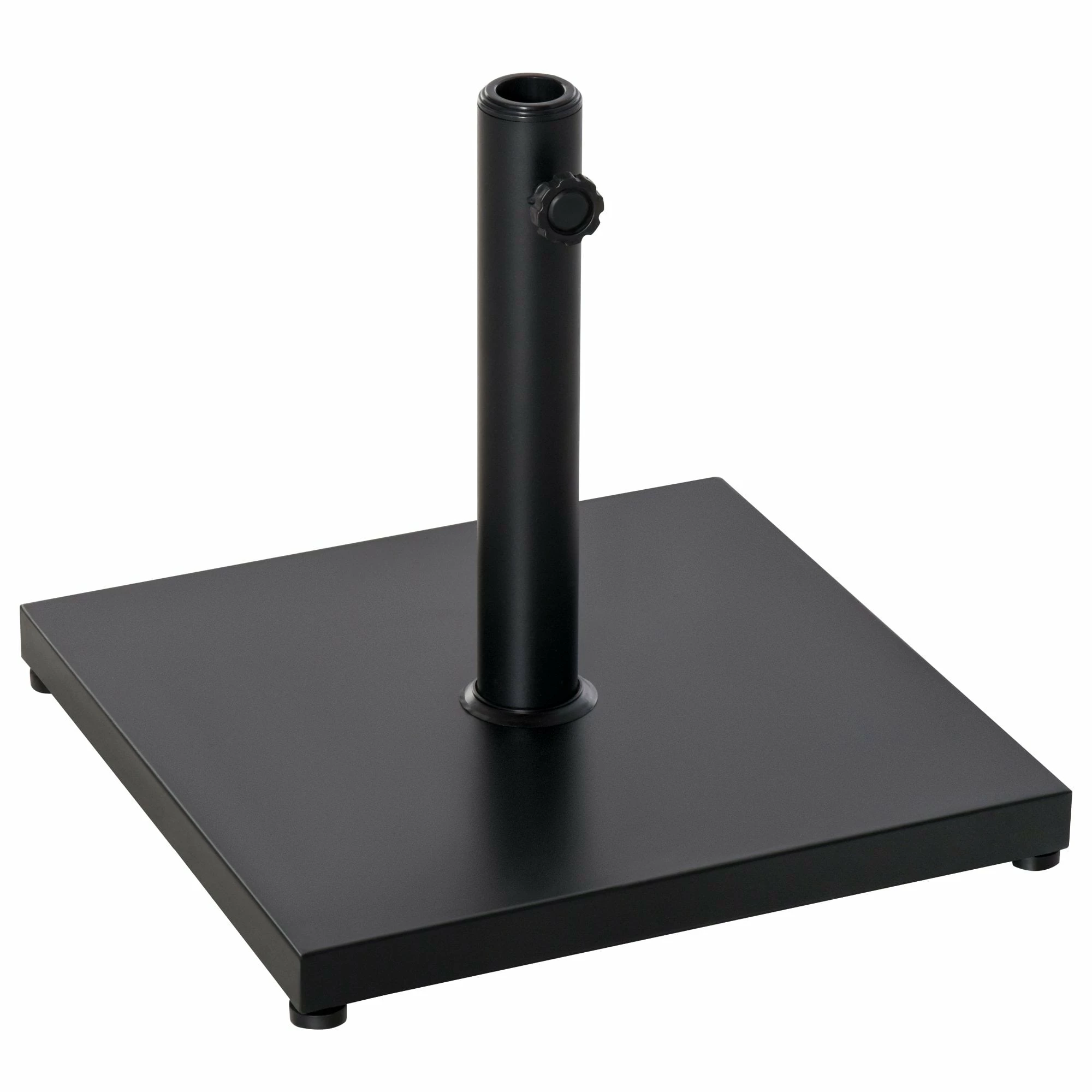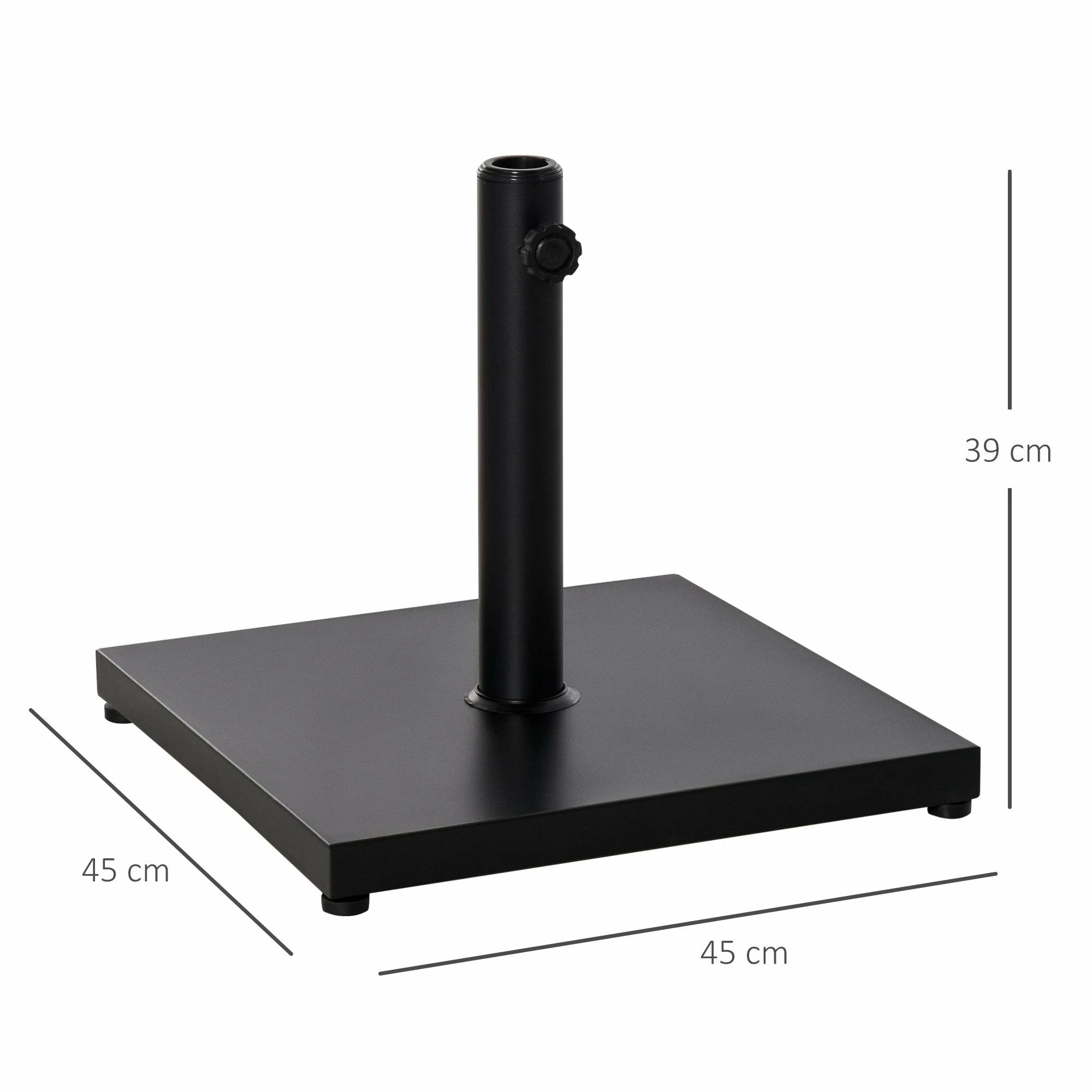 Keep your parasol firmly in place all day long with this base from Outsunny. A simple square design in a matte black finish, this understatedly sleek piece blends in with your garden furniture effortlessly, with its heavy-duty steel construction ensuring it is a mainstay outdoors for seasons to come. With a powder coating all over for extra strength, the central pole holder fits umbrella poles with 3cm, 3.5cm and 3.8cm diameters, with the turning knob locking the pole in place so it doesn’t sway to the side. Its finished with four non-slip foots pads for extra resistance and protection to your floor. A must for anyone with a garden umbrella this Summer and beyond.