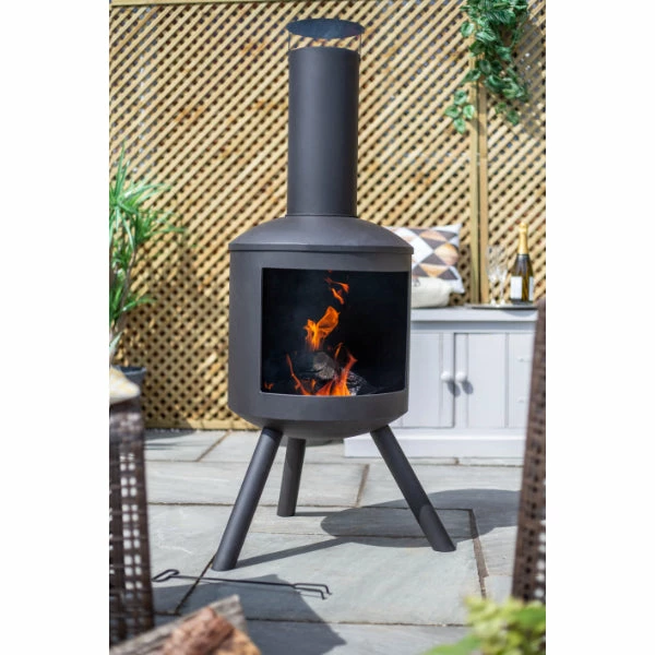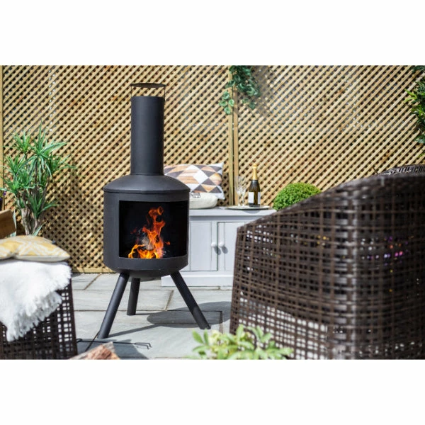 The striking Barola Chimenea from La Hacienda brings warmth and ambience to any garden or patio. Made from durable steel and painted in a matt black high temperature resistant paint, this chimenea is durable and sturdy. Place on your patio and let the natural flame warm and illuminate your outdoor space. The Barola comes complete with a rain lid to minimise water damage and a metal safety tool.