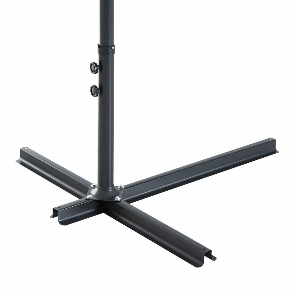 Stylish banana hanging Umbrella, superior in material and excellent in workmanship. Combined traditional workmanship with modern aesthetics, unique and utility. This fascinating parasol is easy to match any villa, garden, Courtyard, swimming pool, plaza etc. It is also an amazing addition for your Rattan furniture or outdoor dinner table. Diameter 3M hanging garden parasol hangs over your dining set or garden set. Perfect use for basking and enjoying sun shining. Ideal for covering spas and breakfast in garden and such relaxing leisure. Please note, cross base is included, but weights are required (sku: 84D-021)