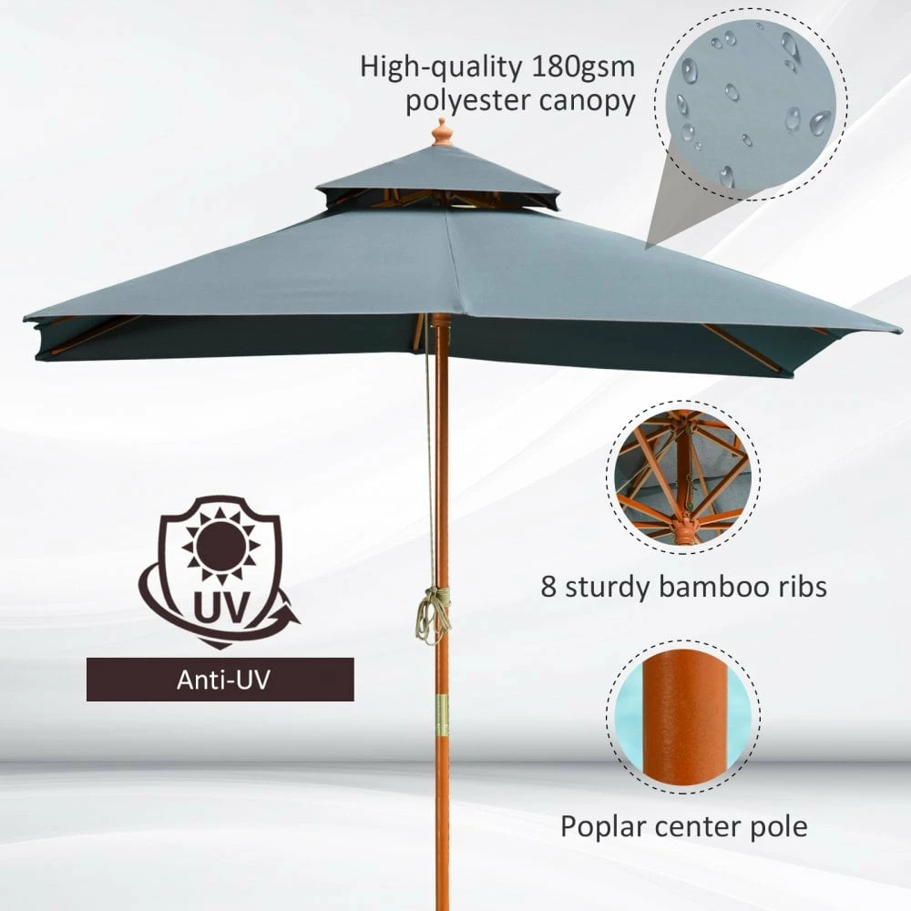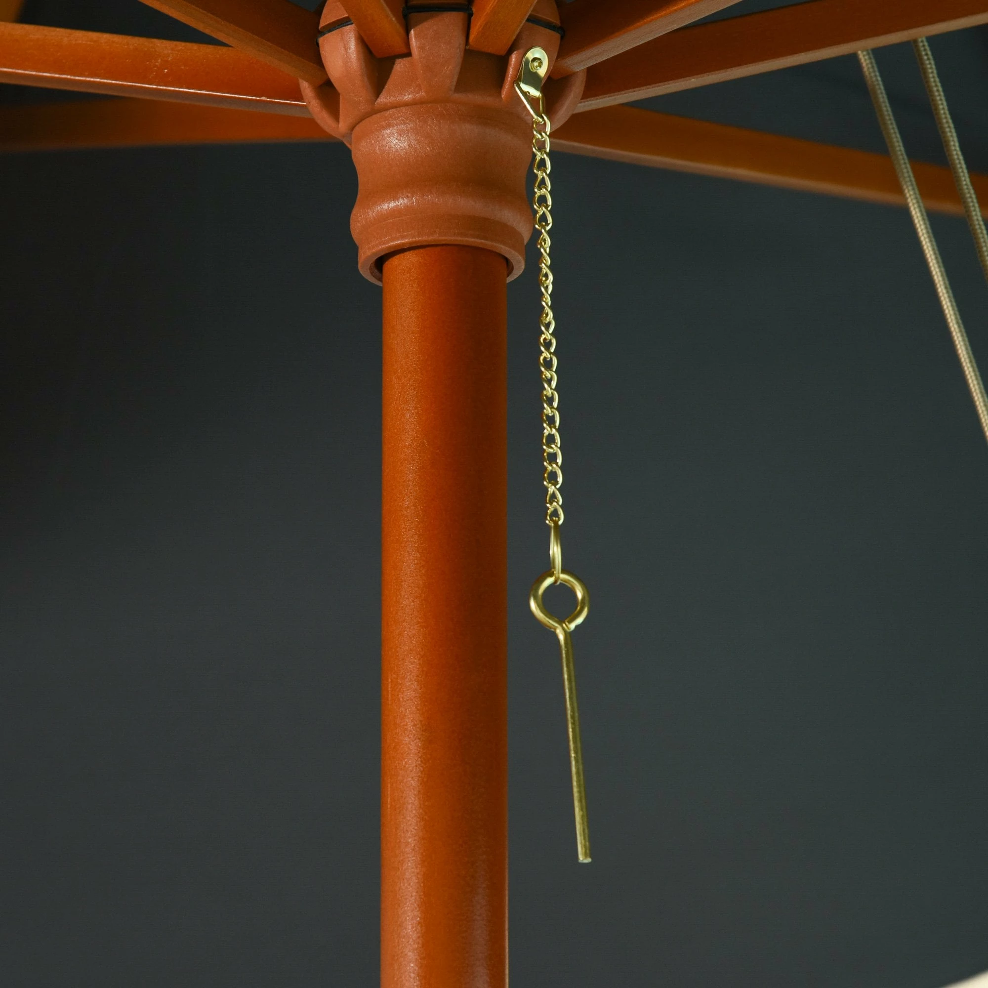 This Pagoda style patio umbrella is a great accessory to compliment your garden and your outdoor furniture. The post is made from bamboo and the top cloth is made from 180g polyester. It can be used alone or use in conjunction with patio furniture with the hole for the parasol. The umbrella can be easily opened and closed using the pull rope on a double pulley configuration. This is a great product to have in your garden and patio.
