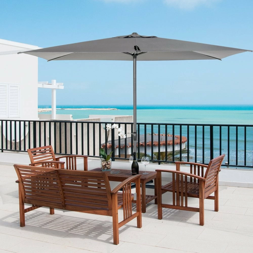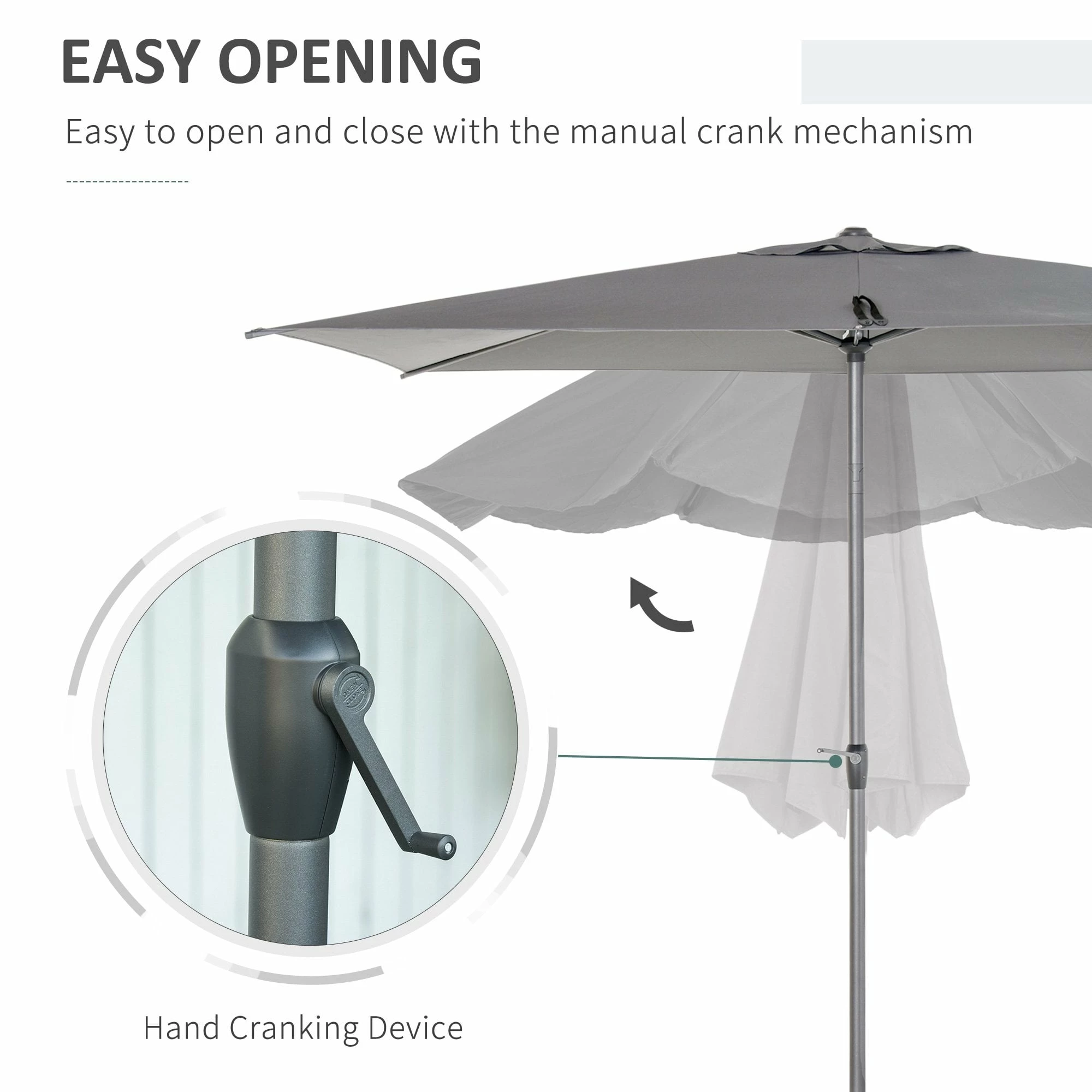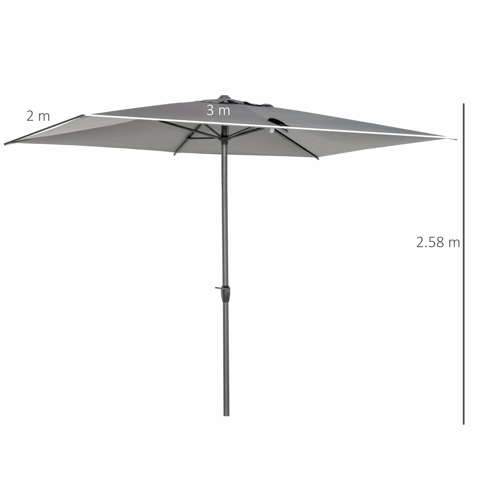 Protect yourself outdoors in ultimate style with this sun umbrella from Outsunny. Our stylish and simple sun umbrella, which can be a perfect addition for any outdoor area. Made from 180g/+ú+¢-à polyester to provide protection, you can adjust the angle to set to a position which is best for you, with six metal ribs for extra support between the frame and canopy. A crank mechanism design for easy opening and closing. The perfect blend of beauty and function.