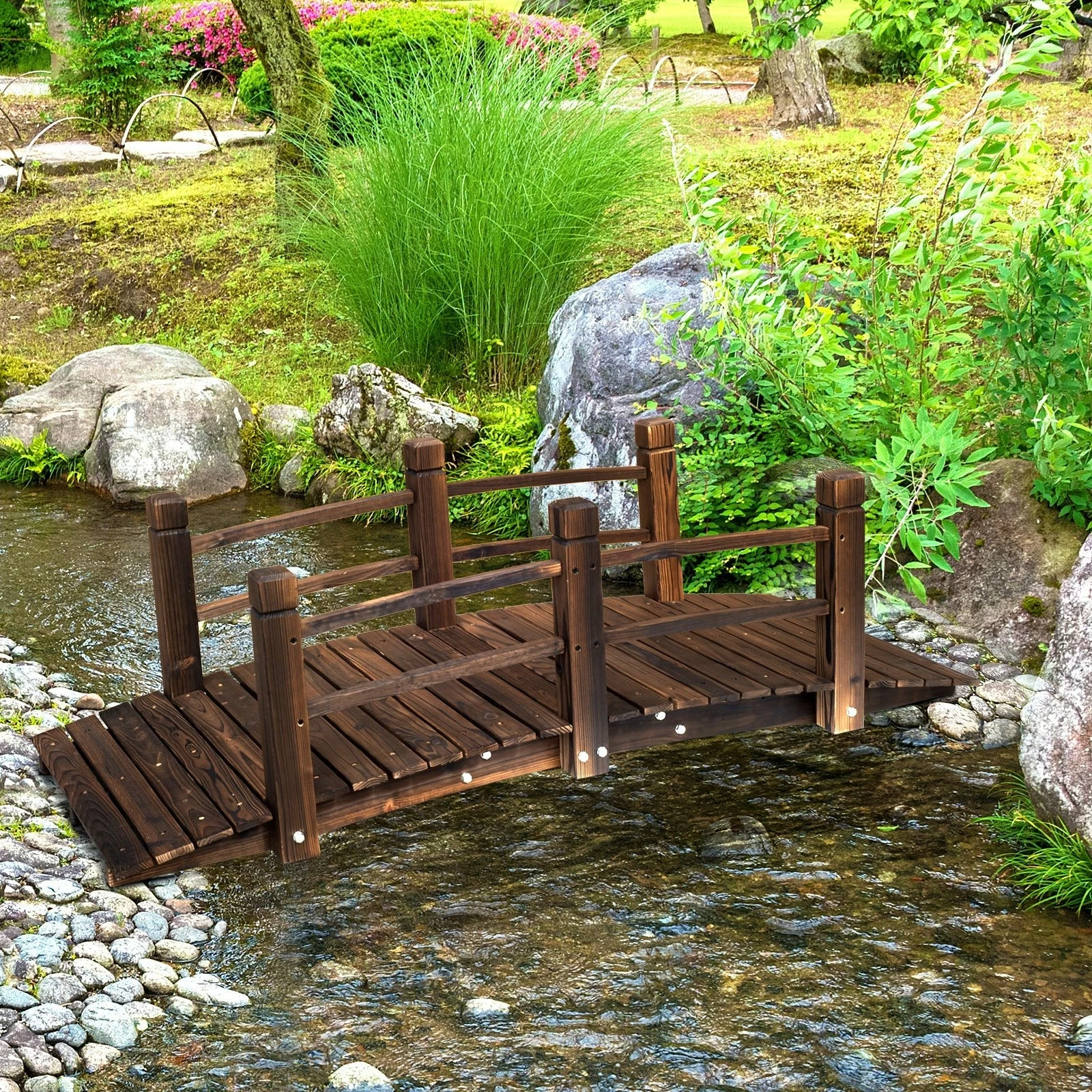 Add an individual touch to your garden with this quirky wooden bridge for garden from Outsunny. Crafted from fir wood with a protective stain topcoat, the pond bridge is protected against rotting, cracking, splitting and mould build up. Its wood construction also allows it to hold up to 181kg in weight. Crafted into a classic arch design, it is finished with a side rail for safety. Our garden wooden ornaments will help transform your garden into an elegant Eden you’ll coming to every time.