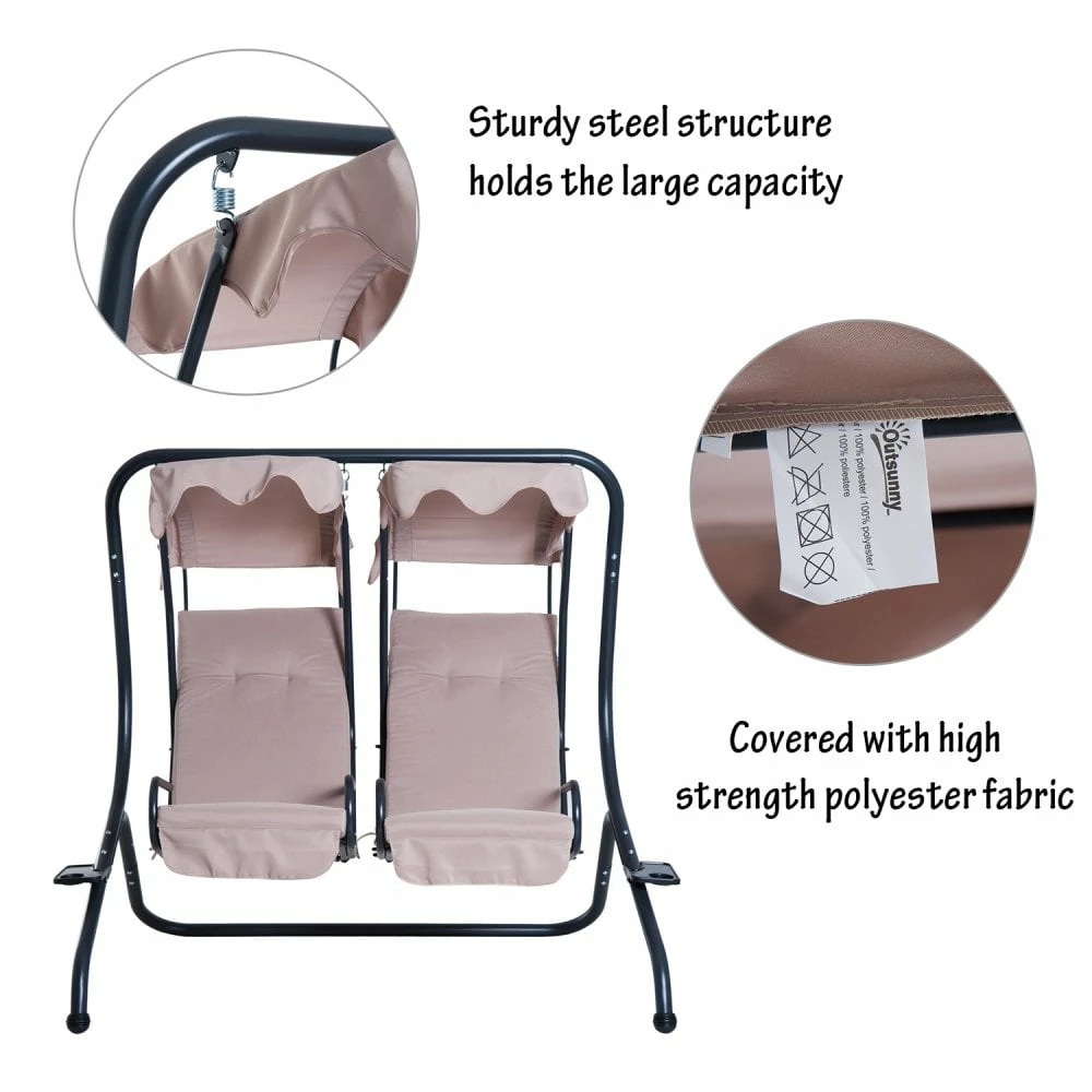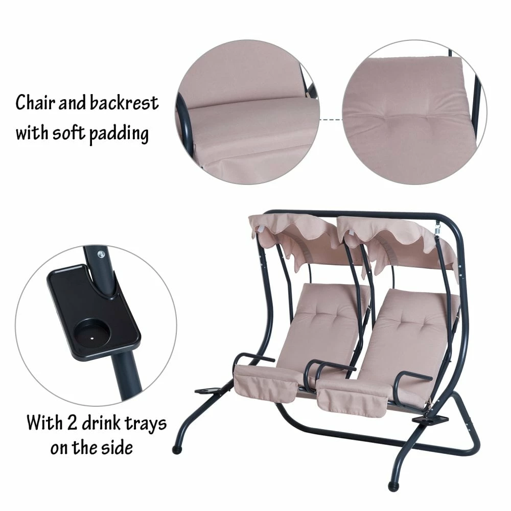 Outsunny-2 Seater Steel Swing Bench – Beige