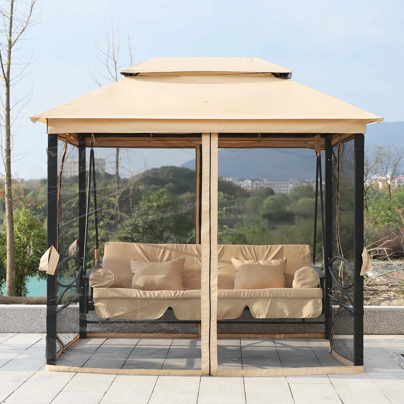 - The large size gazebo with water-resistant 2-tier canopy top and removable zippered mesh curtains helps create a comfortable protected space