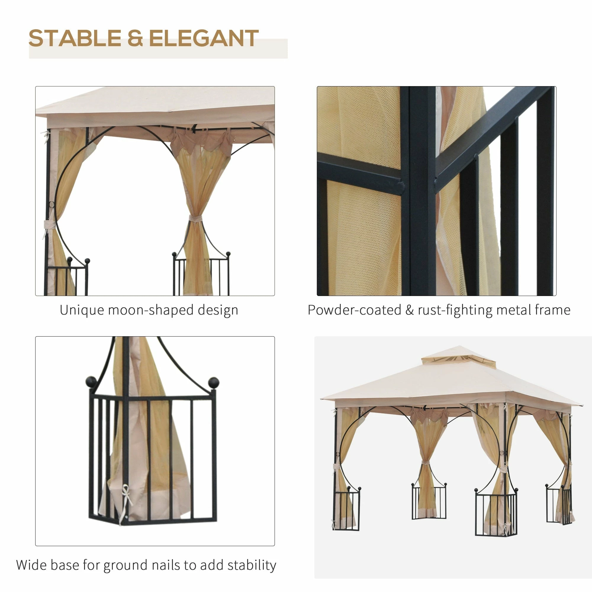 Bring life back to your outdoor living space with this hot tub gazebo with sides from Outsunny. The steel frame gazebo offers optimum protection against harmful UV sunlight and rain. The slim lines and edge design ensures premium usage, while the included ground stakes offer added stability. The powder coated rust-resistant metal frame is designed to last for years of usage. The double tiers on the top offer better ventilation.