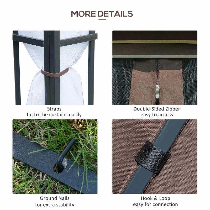 Create your own oasis with this 3m x 3m gazebo. Its steel frame and two-tier polyester canopy ensure sturdiness and airflow. Included are netting and anchoring accessories for extra protection.