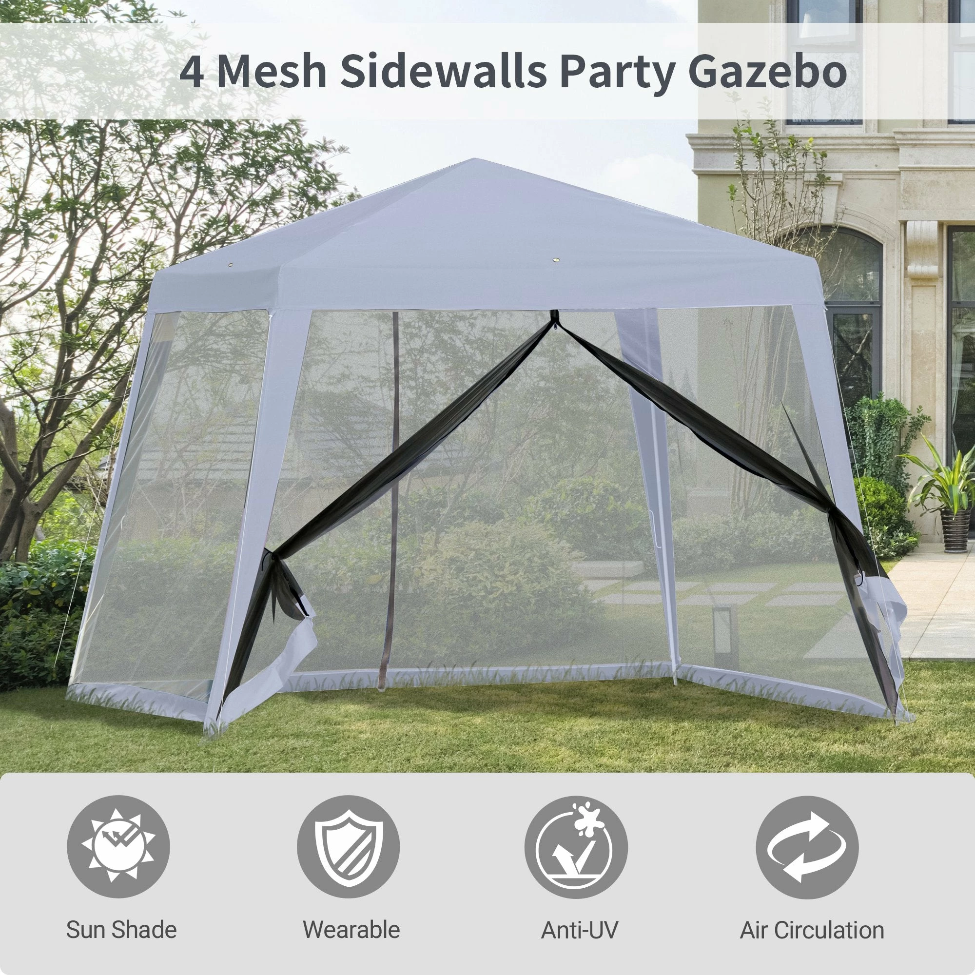Create the perfect shelter spot outside with this gazebo with sides from Outsunny. It features a powder-coated steel frame for support and strength, with a 160/㎡ canopy top for protection against medium rain, sunlight and UV rays and two middle zipped mesh doors, providing easy access in and out and protection against mosquitoes and bugs. With eight stakes and four guy ropes included, you can confident that this small marquee will keep steady and still, no matter the occasion.