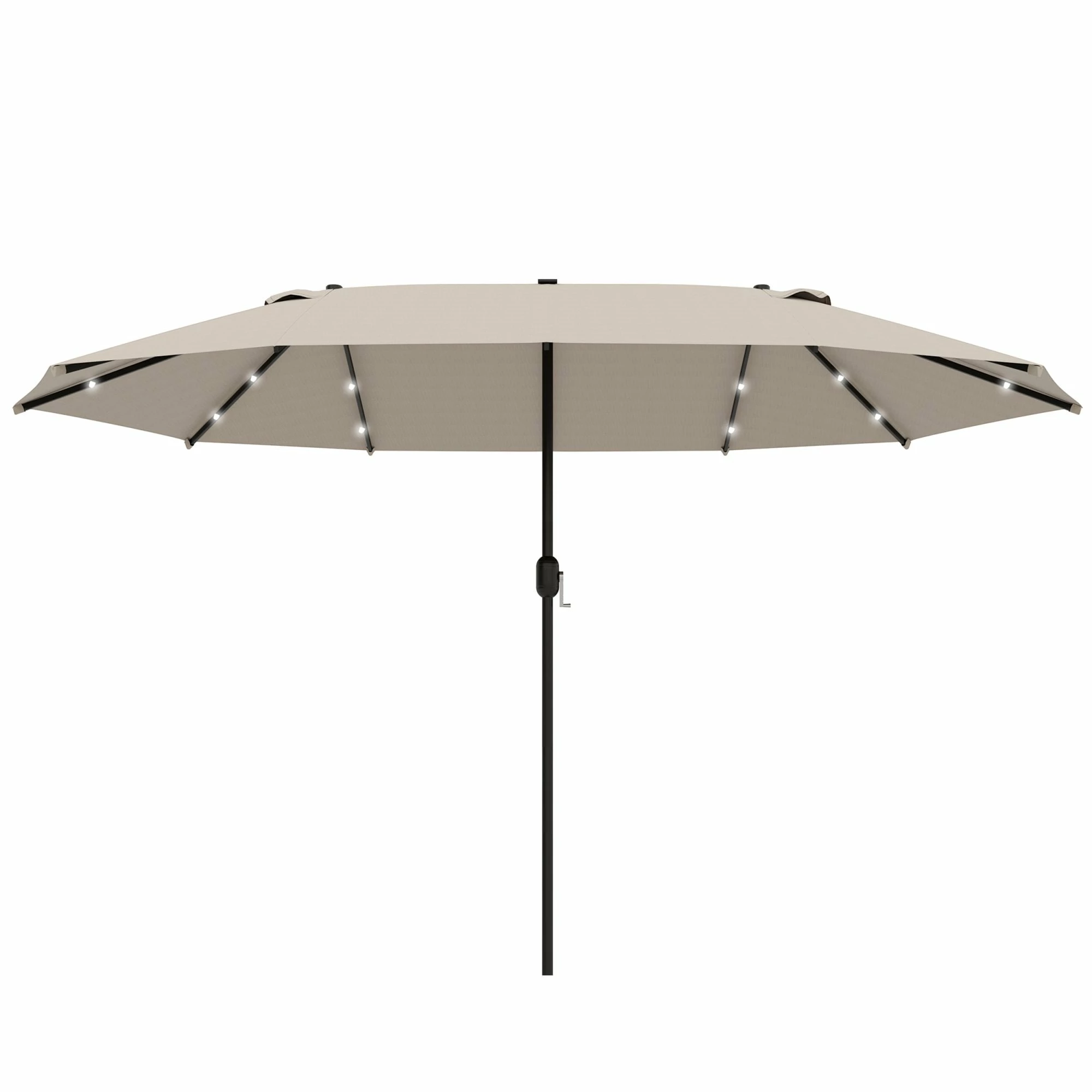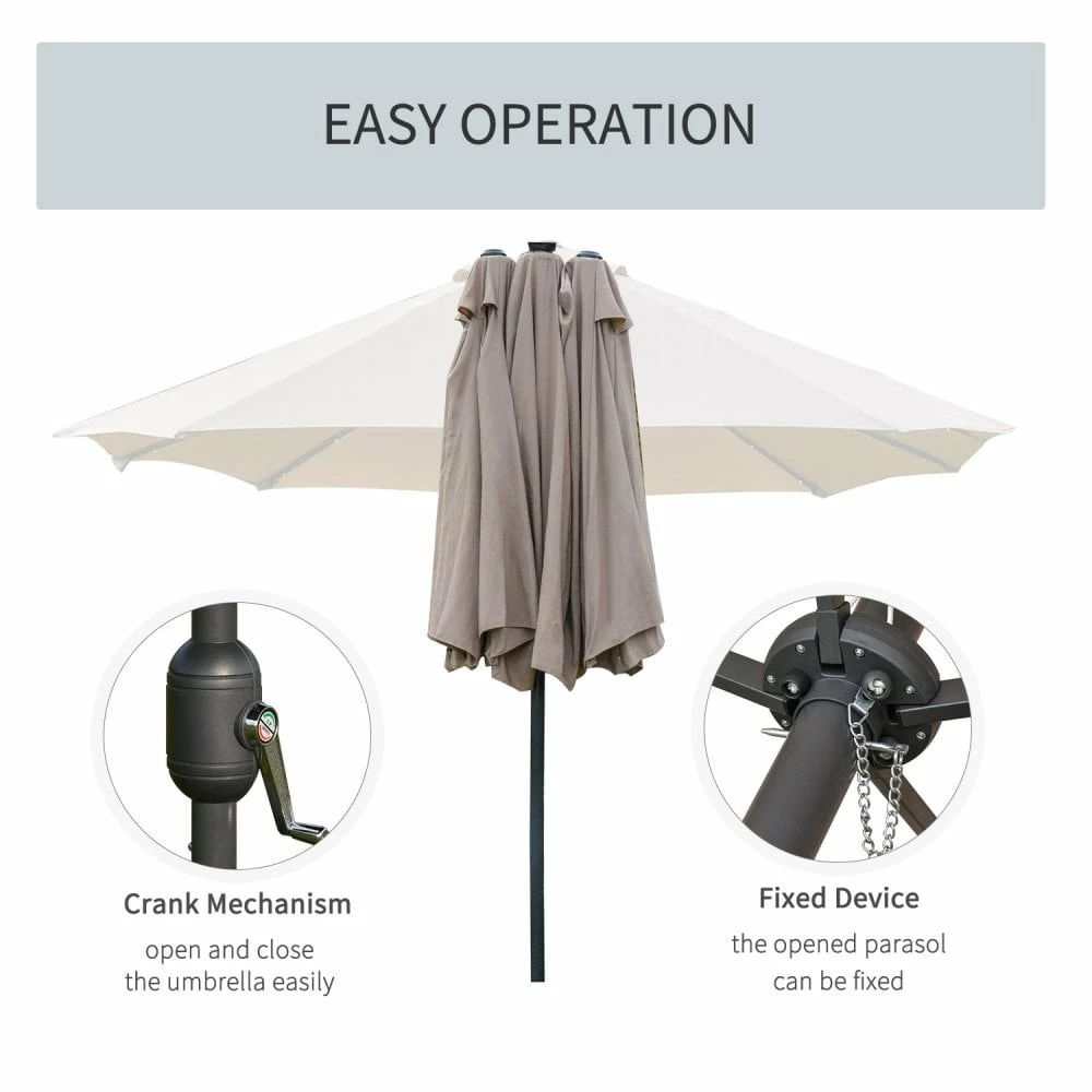 It’s time for your garden to shine with this double-sided parasol from Outsunny. A stylish design, it features 36 lights on the frame ribs to light up your outdoor seating when dark. They are solar powered so no electricity is required. The large polyester canopy creates plenty of shade, protecting you from direct sunlight and heat. Using a crank mechanism for effortless opening and closing, the large canopy can provide more sunshade. If you’ve been searching for a new way to change your garden, then this is the answer. Matching base: Outsunny sku 84D-089.