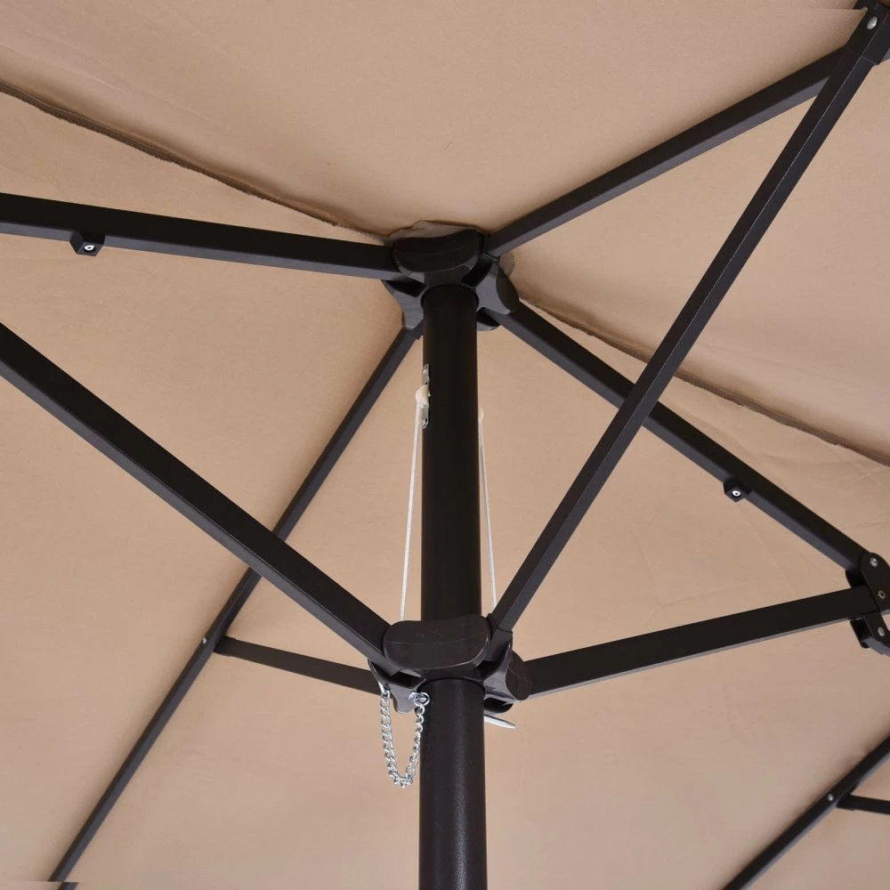 - Double canopy design garden umbrella covering a 4.6M diameter area