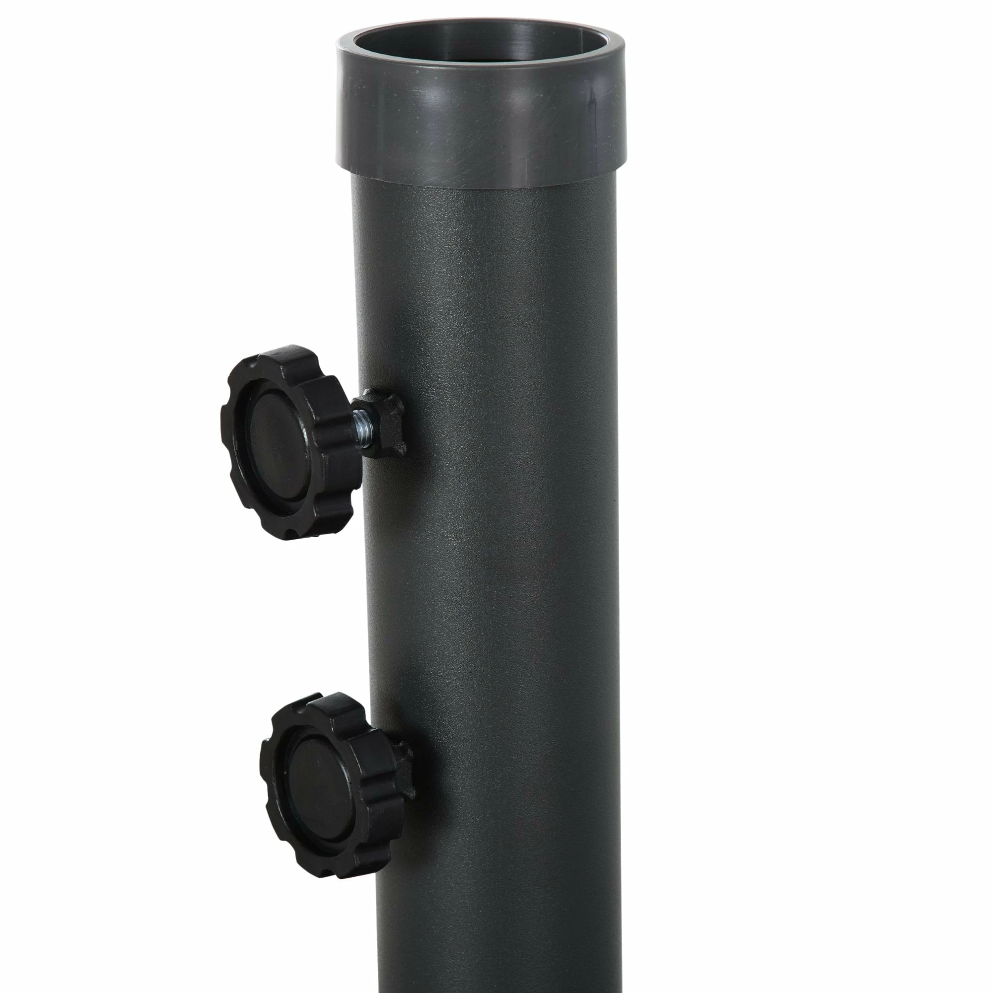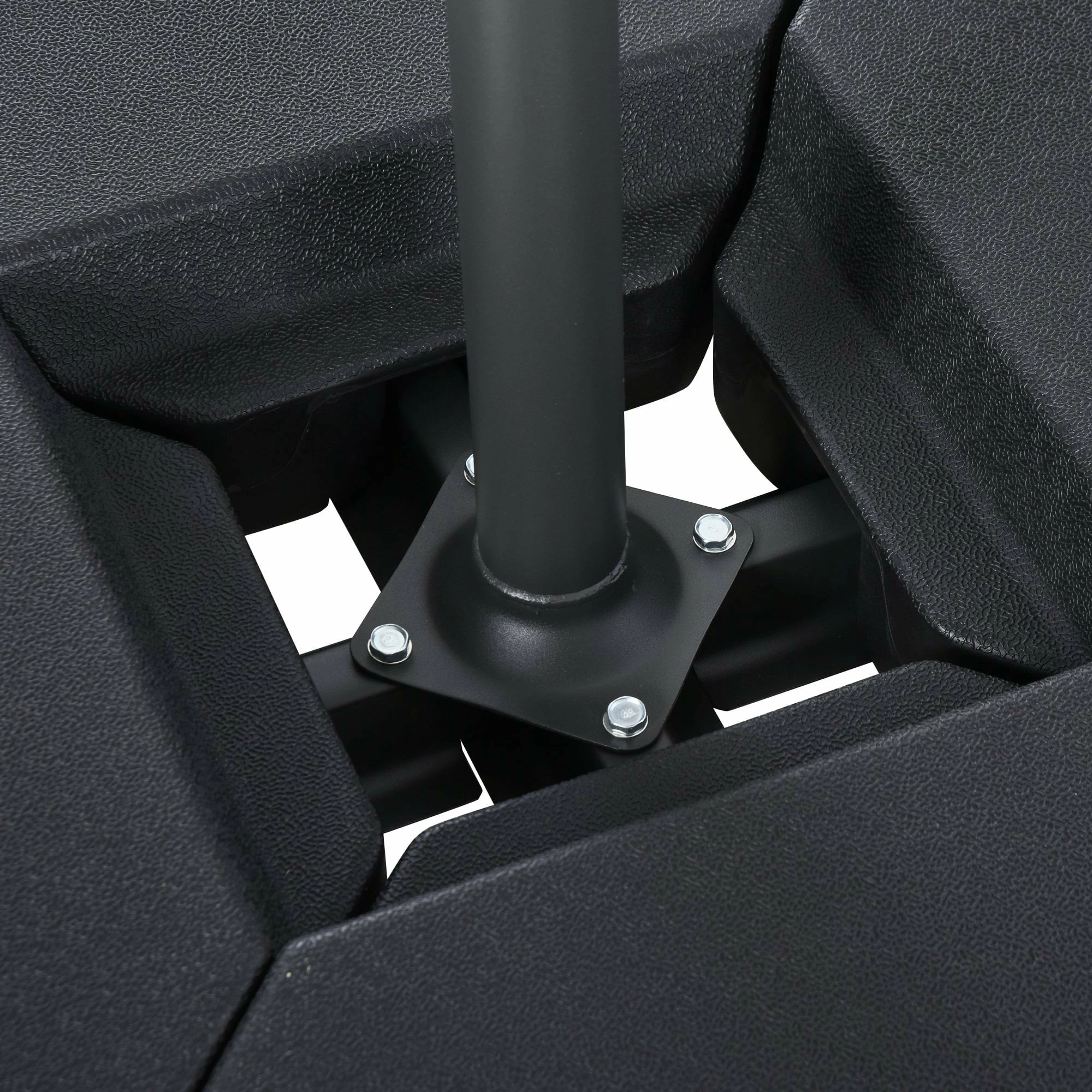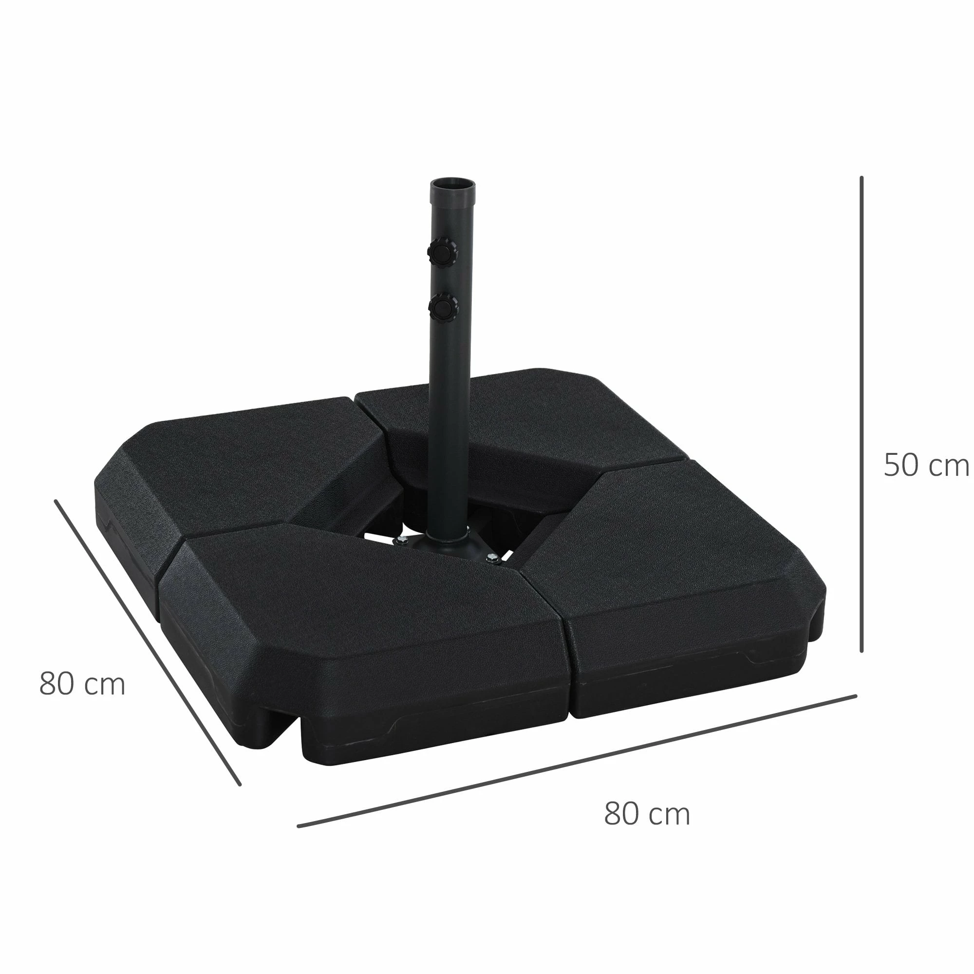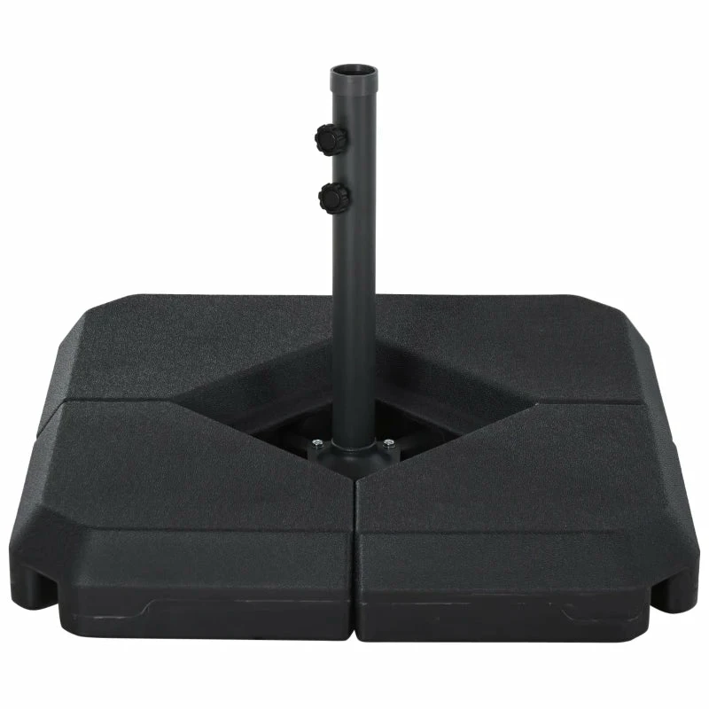 Keep your parasol held firmly in place with this four-piece weighted base from Outsunny. Made from strong HDPE plastic, it is comprised of four pieces which fit together on the supplied steel cross base, fitting parasol poles with a 48mm diameter. Each parts holds 15 litres of water or 18kg of sand, and is filled with the side sprout. Easy to carry when empty. Whether it’s for the home or a commercial premises, this is the parasol base for you.