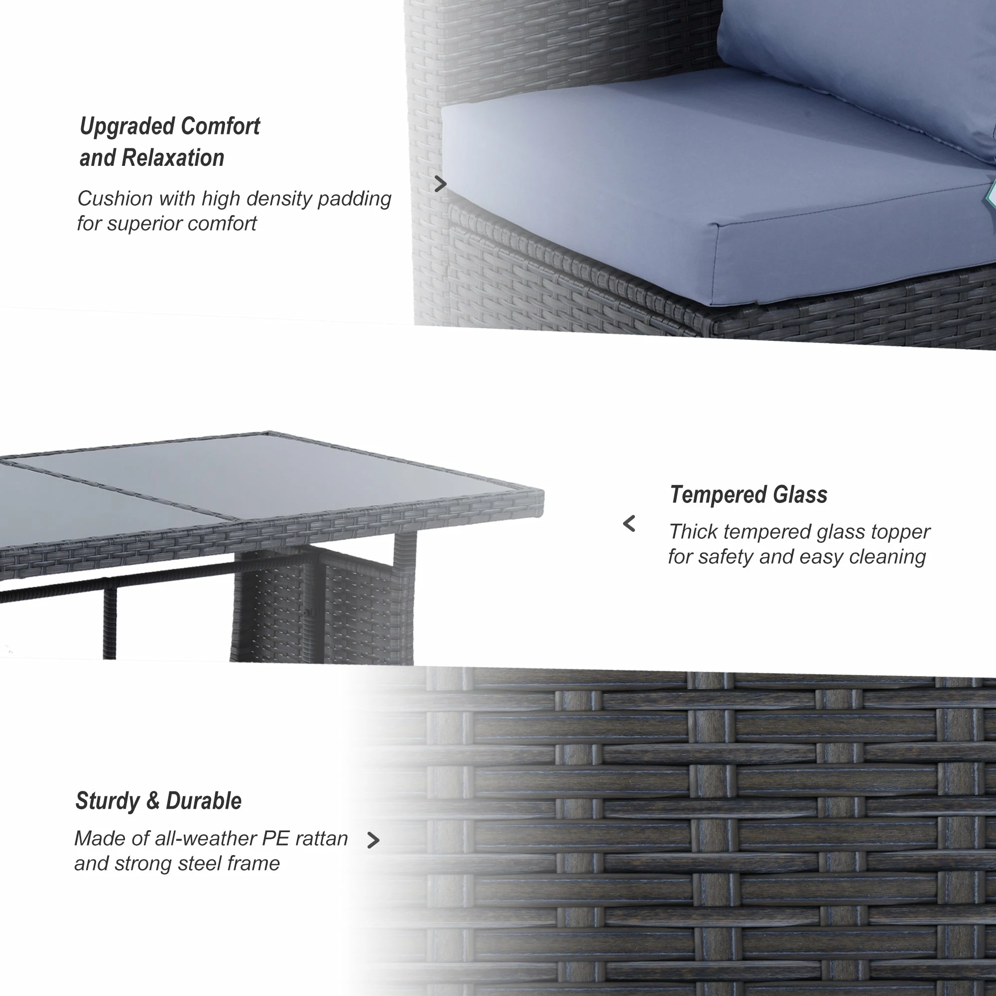 Brighten up your outdoor area with this Rattan furniture set from Outsunny. Decorative and functional creates a setting making the outdoor area as inviting as the indoor. Easy to clean and maintain this set will offer the outdoor lounging experience for years.n