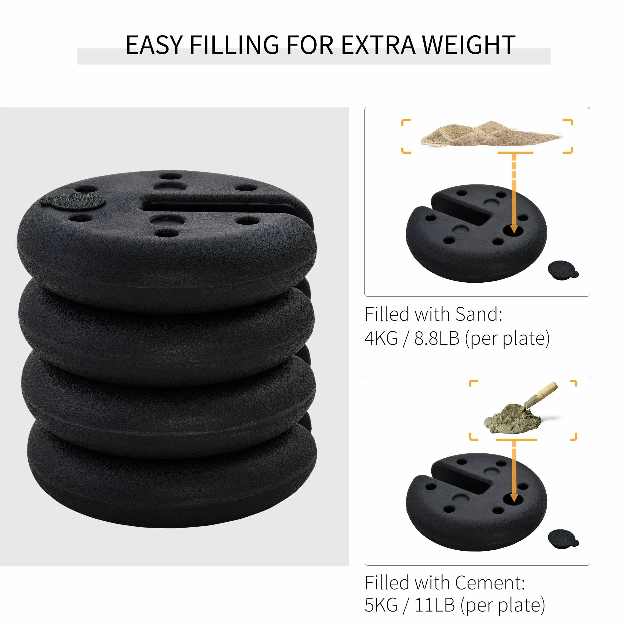 Keep your lightweight and pop-up tents and gazebos weighed down with this set of four portable weights from Outsunny. Made from durable and heavy-duty plastic, these disc shaped pieces can be filled with sand, meaning you can take them easily with you. Weighing 4kg with sand or 5kg with cement, this set is an effective way to keep your shelter on the ground in rain and windy conditions.