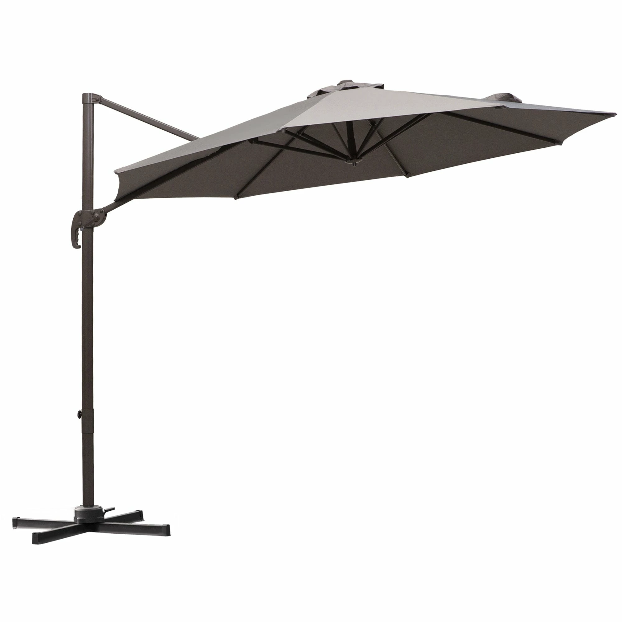 - The cantilever patio parasol rotates 360 degrees and can be tilted to various angles to suit you