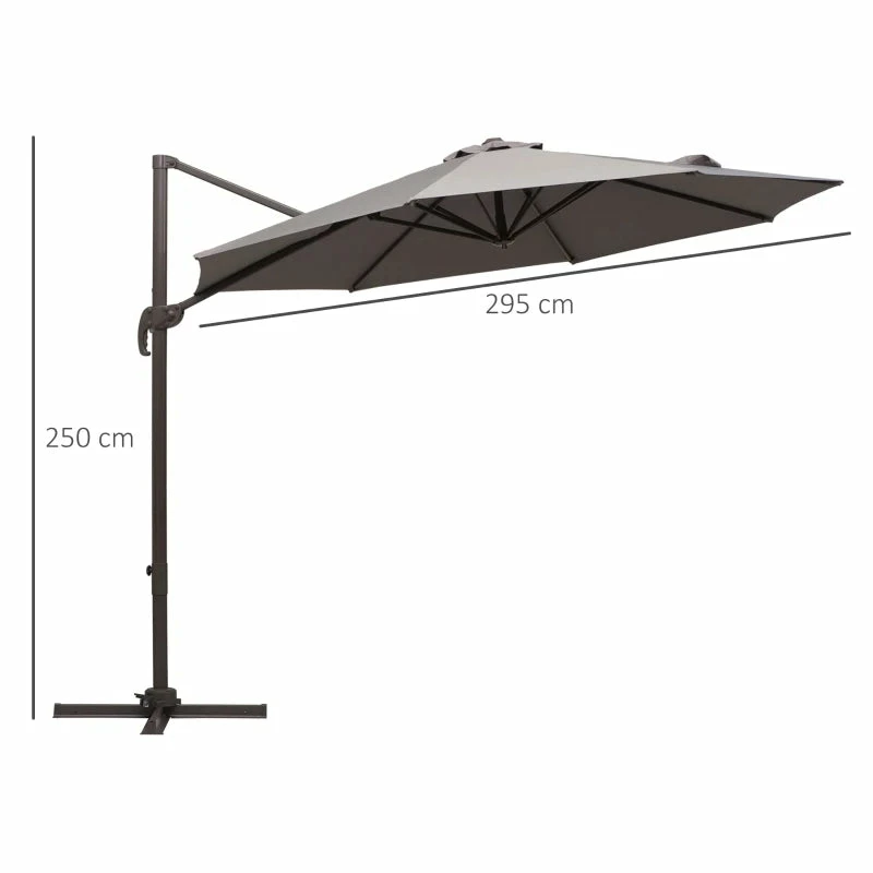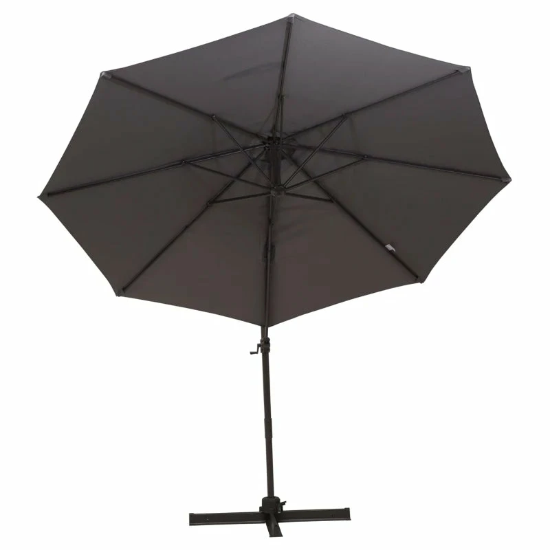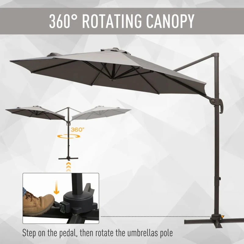 Ensure you keep yourself protected enjoying the sun with this large paraso from Outsunny. Made from powder-coated aluminium, the strong and durable central pole is resistant to rusting, peeling and corrosion to provide you years of use outdoors. Connected to the frame via eight steel ribs for extra strength, the polyester canopy is easy to clean and will not fade, as well as protecting you from harmful UV rays. Using a crank mechanism for easy opening and closing, the canopy is able to rotate a full 360 degrees via the foot pedal to suit your shade needs. A piece which every garden needs.