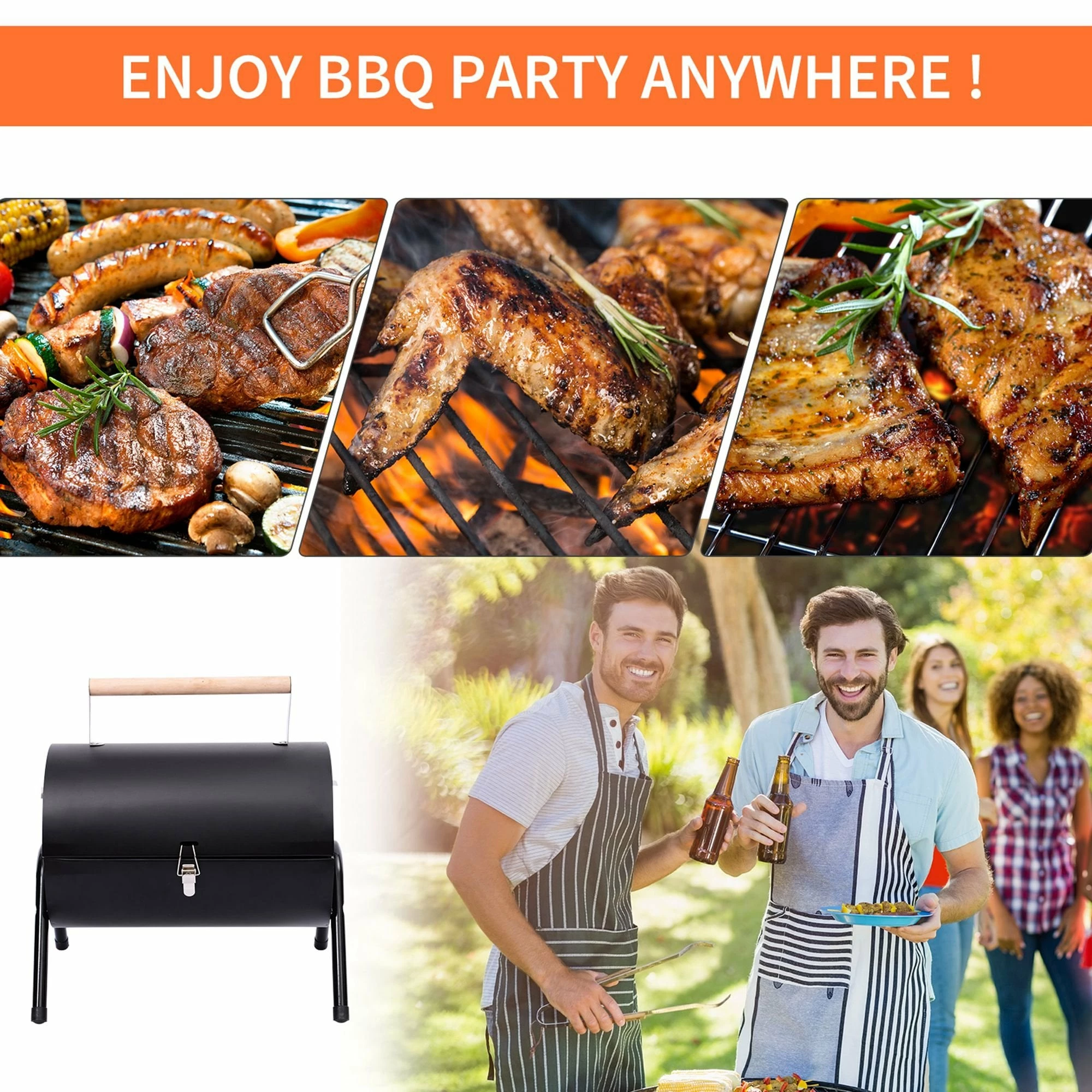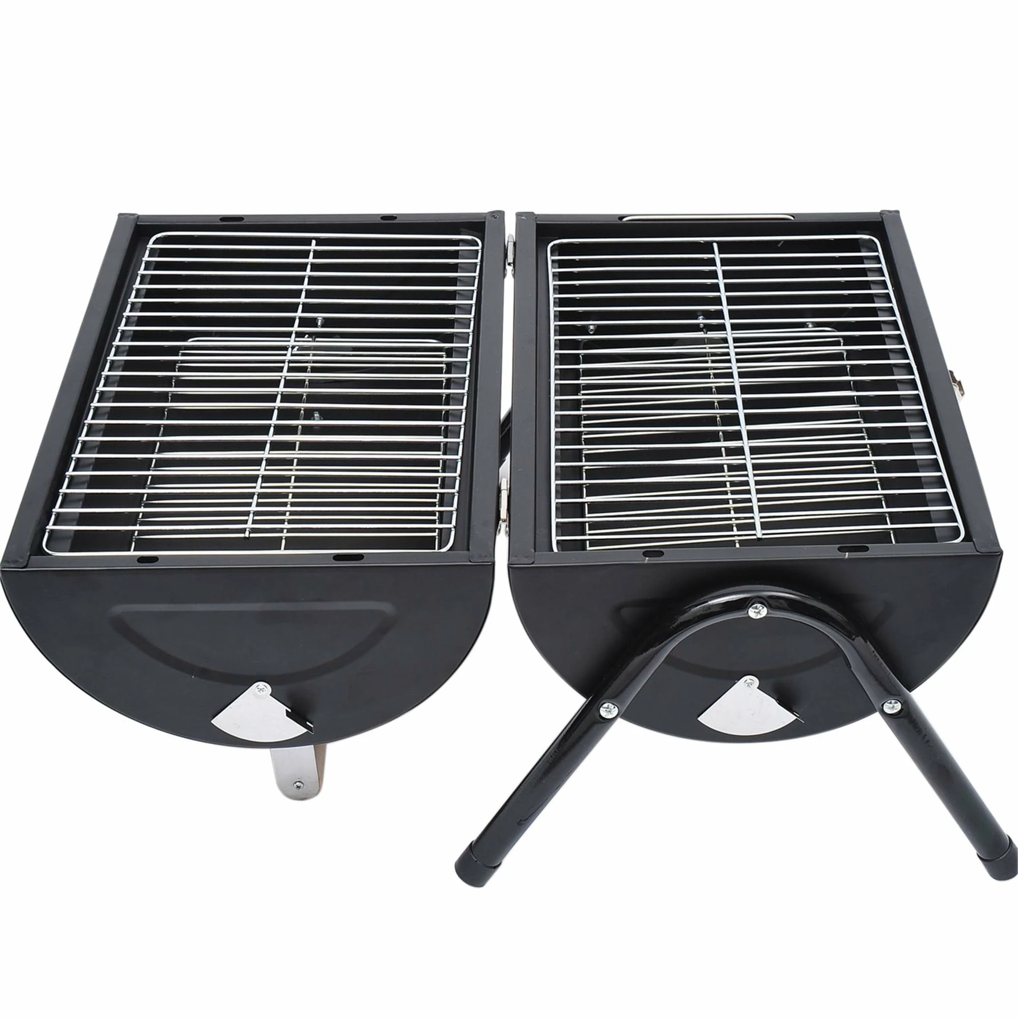 Cook and enjoy delicious BBQ food almost anywhere with this compact grill from Outsunny. Using a metal body with black enamel coating for protection against temperatures up to 600° , it is made into a portable design which is easy to carry around with you. It opens up to reveal a cooking compartment on both sides: both equipped with a stainless steel cooking grate, giving you lots of room for food and allowing you to separate meat and vegetables easily. Thick legs ensure balance, with a handle for easy carrying and a lock to keep the lid together when on the go. Perfect for grabbing on route to the park.