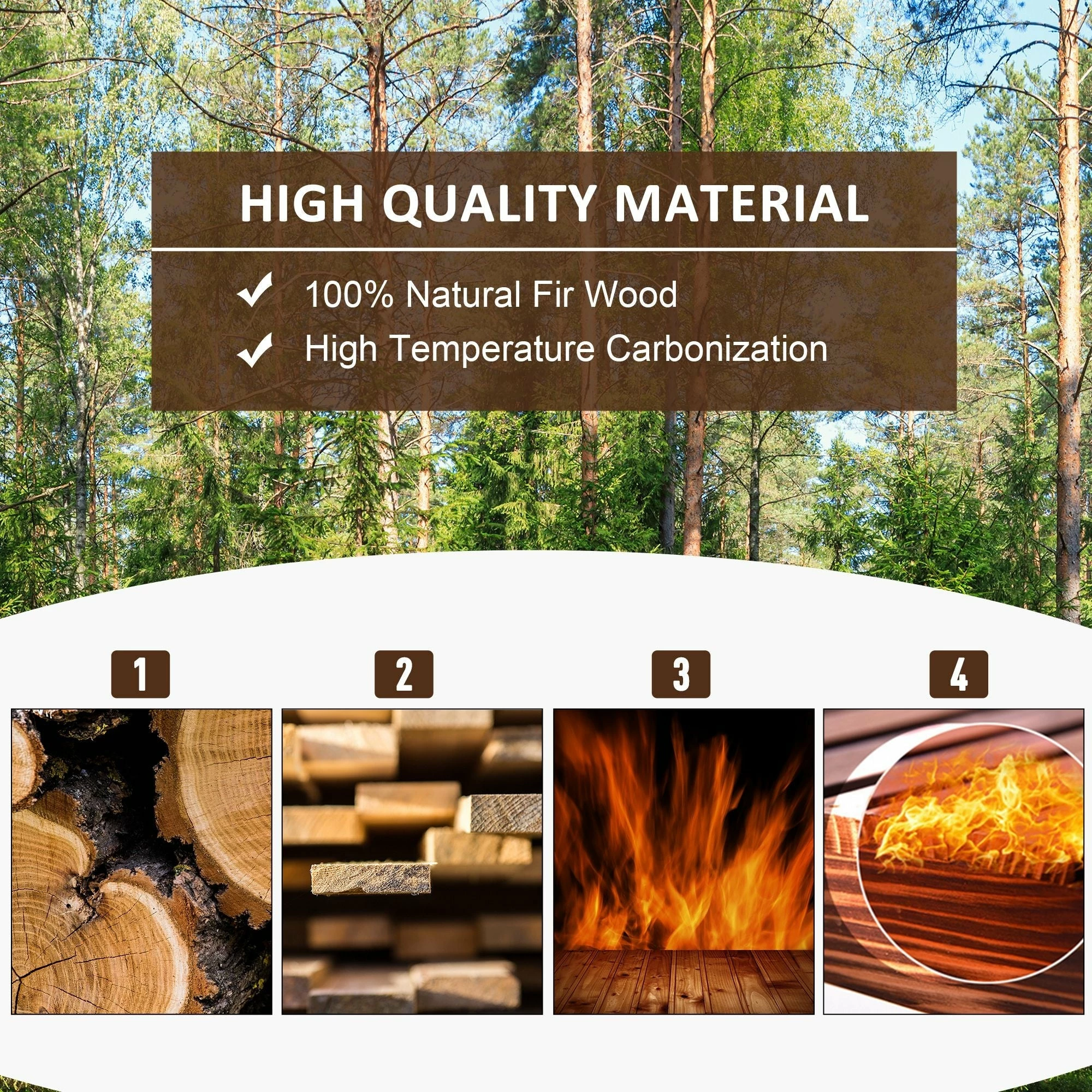 - – Carbonized fir wood is anti-corrosion, anti-crack and anti-deformation