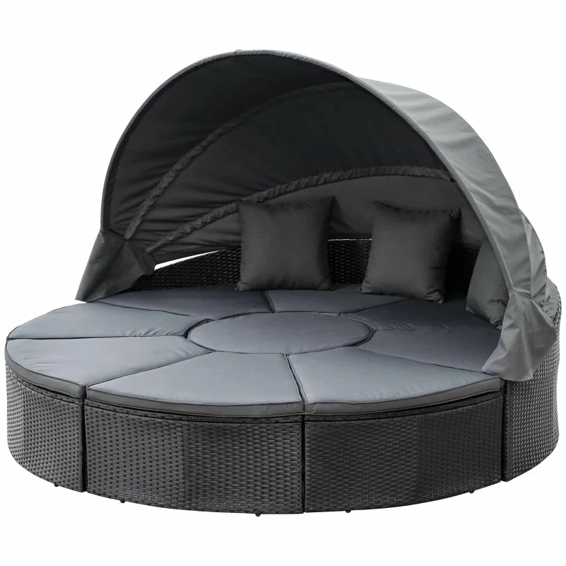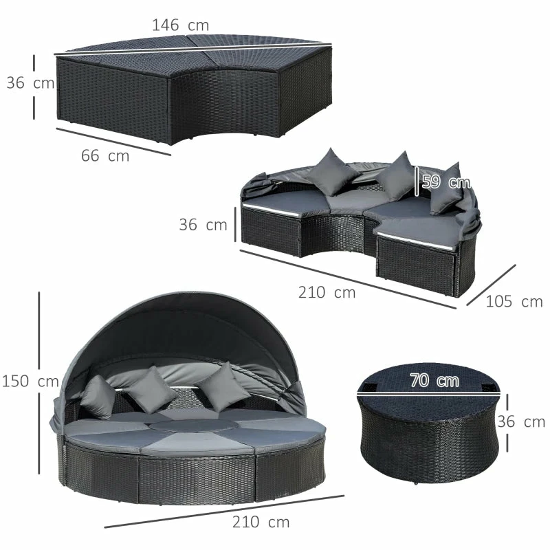 - Half Round Sun Lounger with Roof Dimension: 210L x 105W x 150H cm