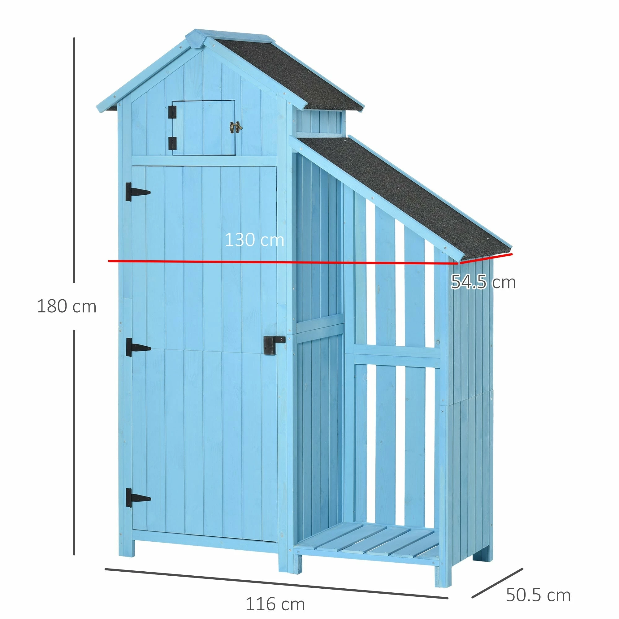 Reclaim garden space with this tall and narrow vertical storage shed from Outsunny. Made from fir wood, this tool cabinet is covered with a coat of protective paint, which helps protect the structure from light to mild weather damage for extra wear. The open right side is perfect for firewood. A sloped roof prevents water build-up, with asphalt covering so liquid doesn’t seep through. It’s finished with a lockable door making it secure. A handy piece suitable for all outdoor spaces.