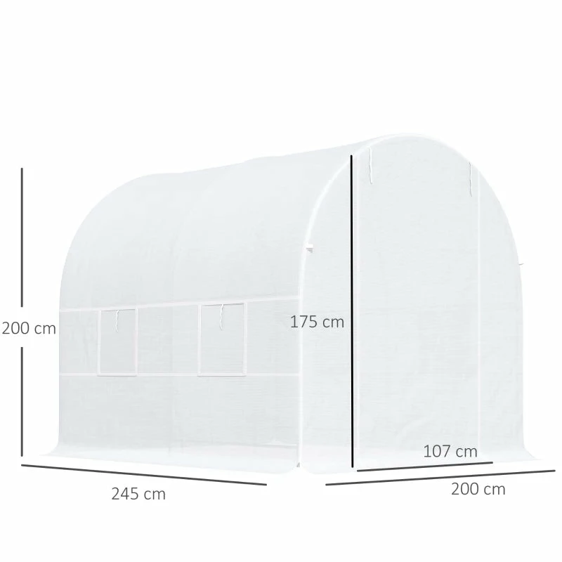 This Outsunny 2.5 x 2 x 2m polytunnel large is perfect for year-round gardening. Features a durable polyethylene covering with grid threading and a sturdy Galvanized Steel Tube frame. Our poly tunnels with door is great for seeding, or just to protect your young plants from cold. Thisplastic greenhouse walk in design brings the protective surroundings that you need, without spending large amounts of money needed for a purpose built greenhouse.
