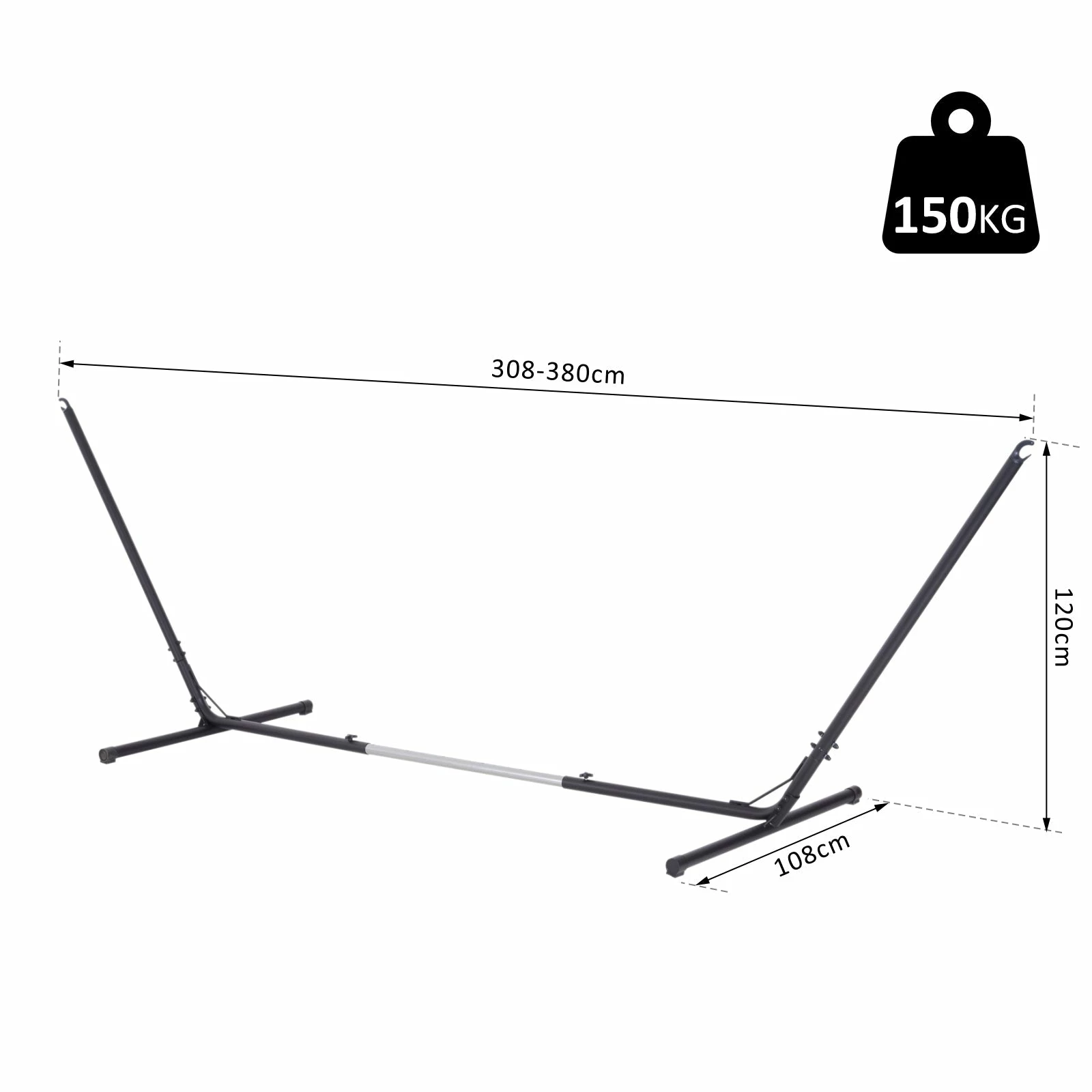 Hang your hammock anywhere with this Outsunny stand. Crafted from powder-coated steel for strength and durability, it adjusts from 308-380cm to fit all hammocks. Safe, stable, and weather-resistant, perfect for relaxing outdoors all year.