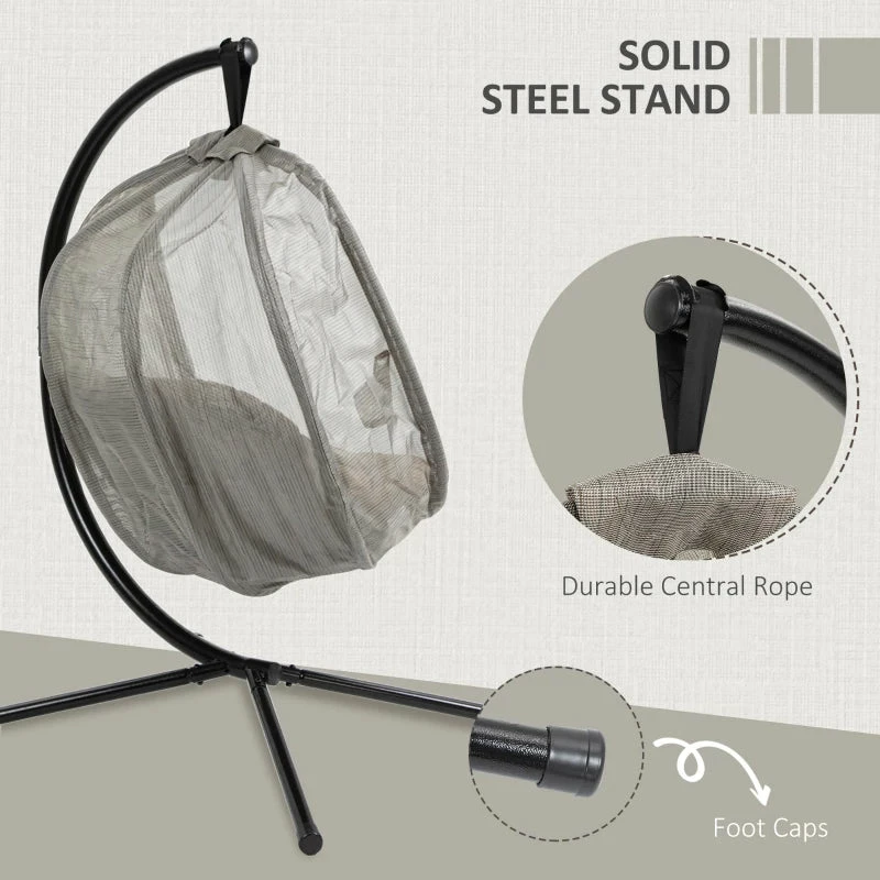 - STEEL FRAME: Strong core, with top hook to support the sitting basket fully. Three long legs keep it evenly balanced.