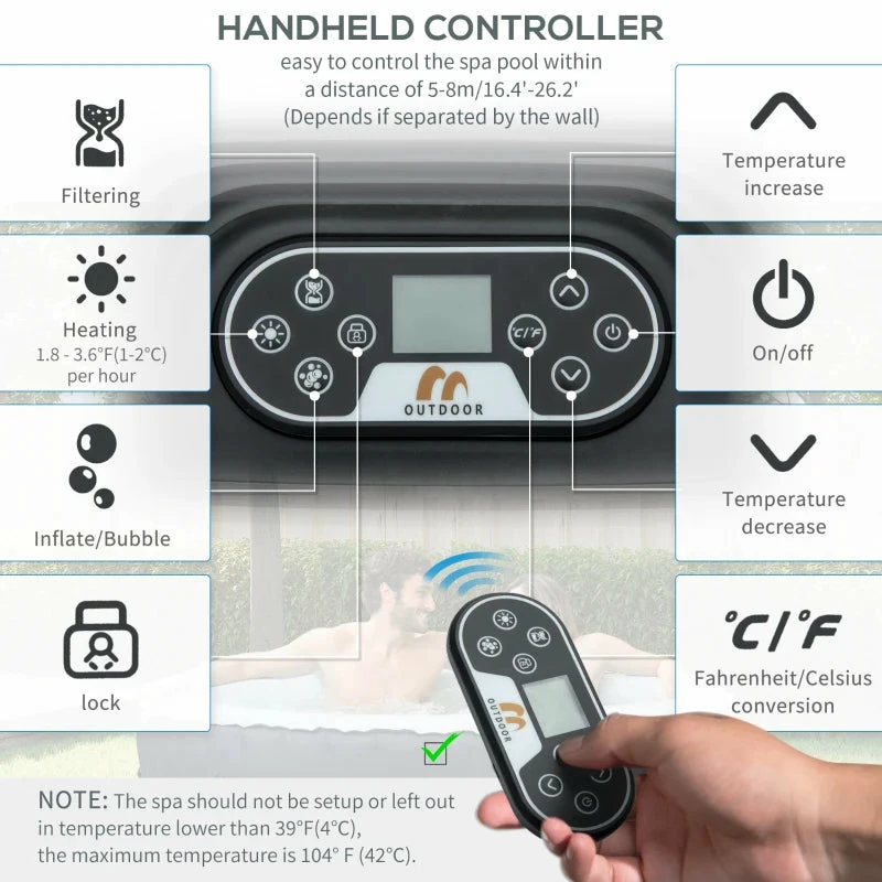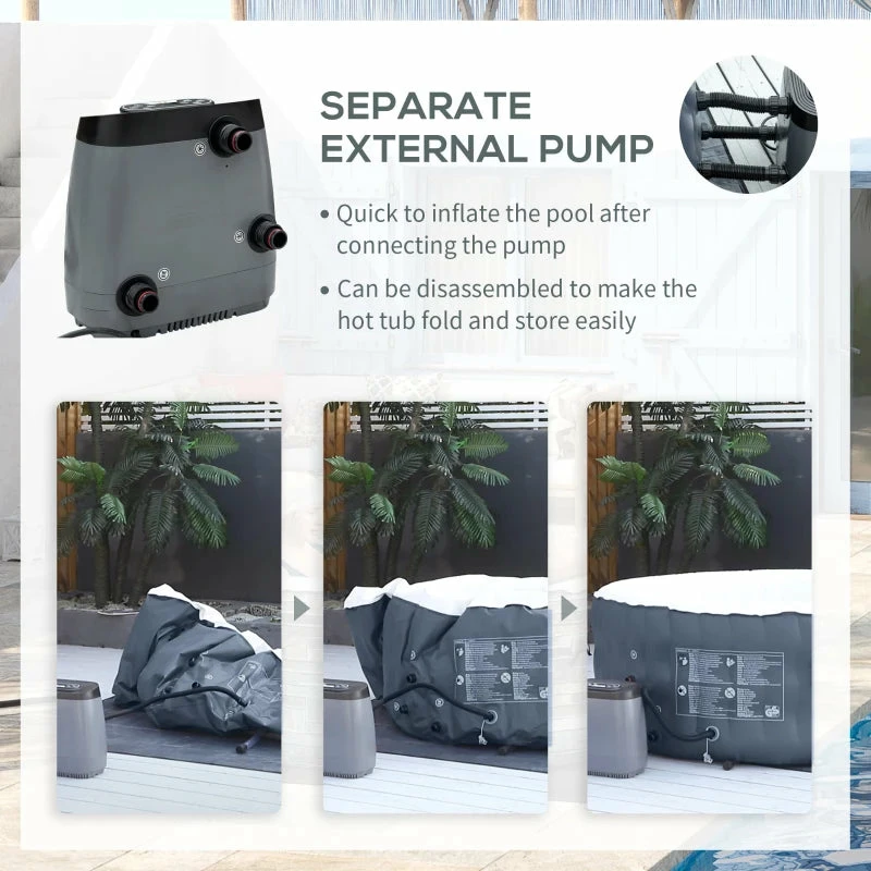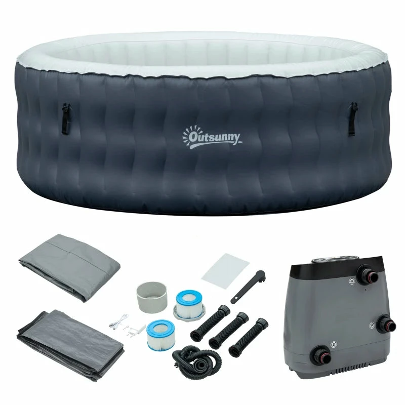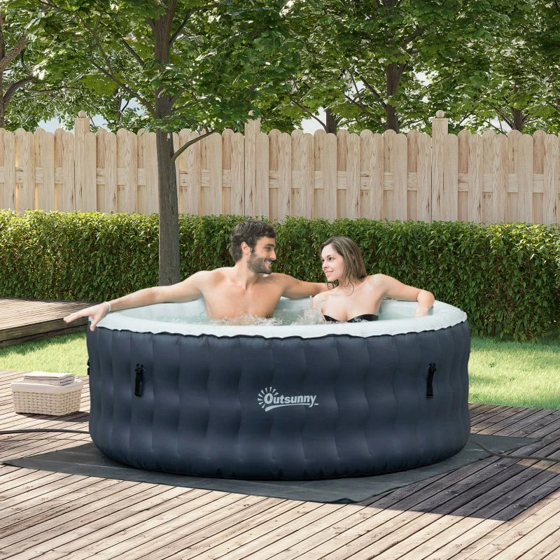 Outsunny Inflatable Hot Tub Spa Round With Cover For 4 People 180cm – Dark Blue