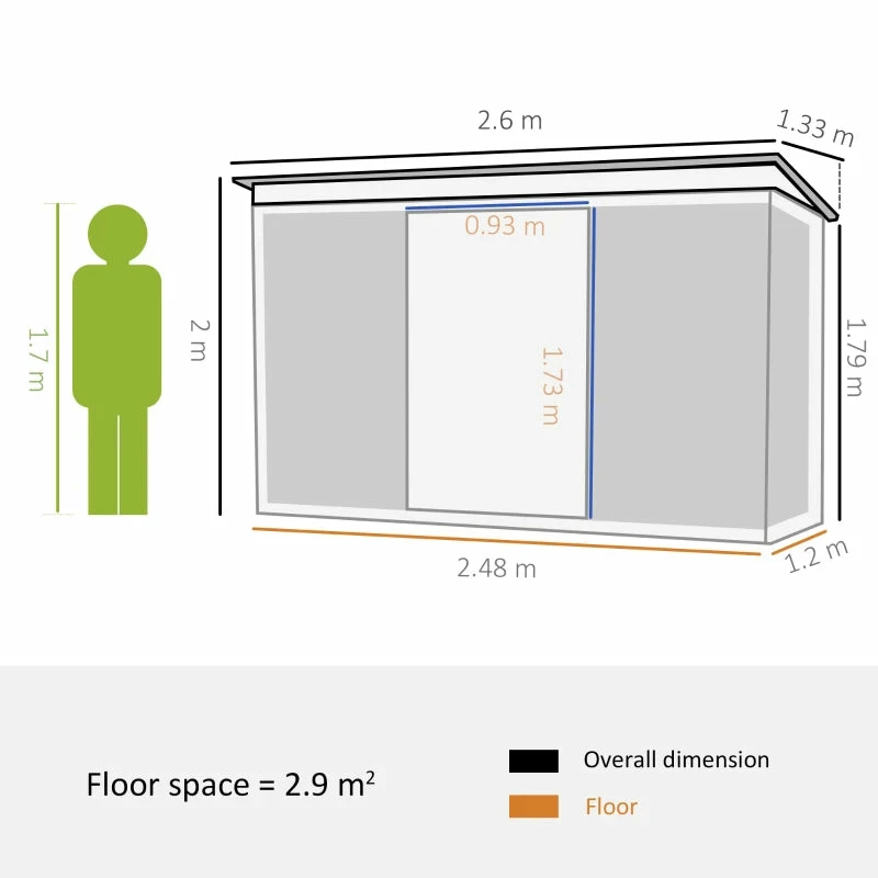 This Outsunny outdoor storage shed is a safe and protective way for keeping tools, equipment and outerwear stored. This corner garden shed is also spacious enough as a bike storage shed for the outdoor adventurers. Made from corrugated steel, the galvanised shed is strong, fitted with a sloped shed to prevent rainwater building up. Two clear front panels allow sunlight to drench through – outdoor sheds easy to see inside. Complete with two lockable sliding doors to enter and leave with ease.