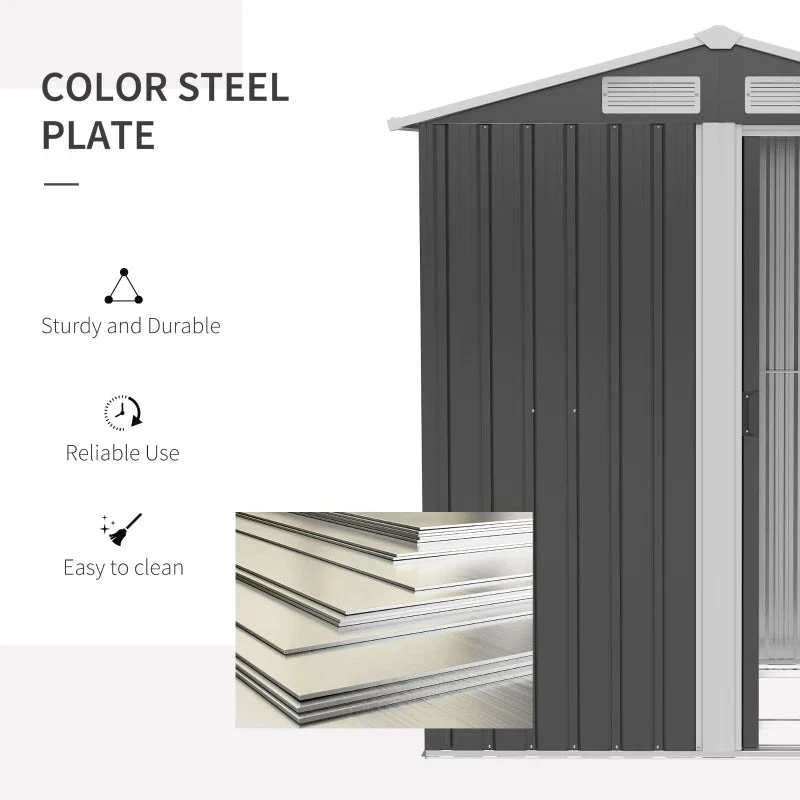 This Outsunny galvanised shed is the top place to keep your tools, garden equipment and outerwear stored and protected. The outdoor shed has distinct advantages over traditional wooden models, water protection and durable for outdoor use. Large space for keeping tools, equipment, bikes. Sloped roof of our corner garden shed is easy for rain draining and sliding door make you easy to access. This pent shed can be your perfect choice for patio and lawn.