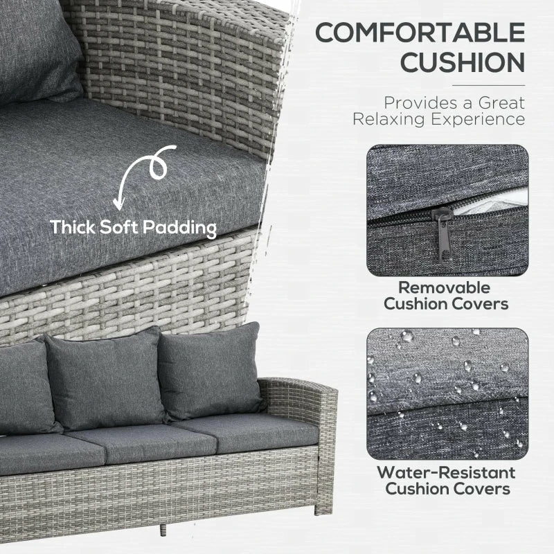 Ensure there’s plenty of sitting space outdoors for friends and family with this conservatory furniture from Outsunny. Made from hand woven PE rattan with aluminum frame underneath, each piece has been built to last, providing solid and reliable use time and again. The garden furniture sets will accommodate up to seven people easily. With plush padded cushions all over, this outdoor furniture has been made with comfort in mind, allowing you to relax for hours on end