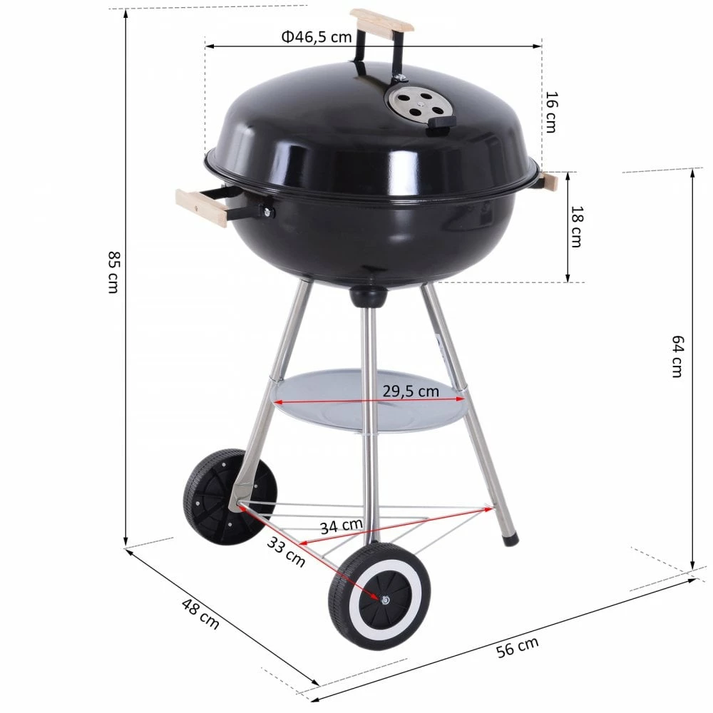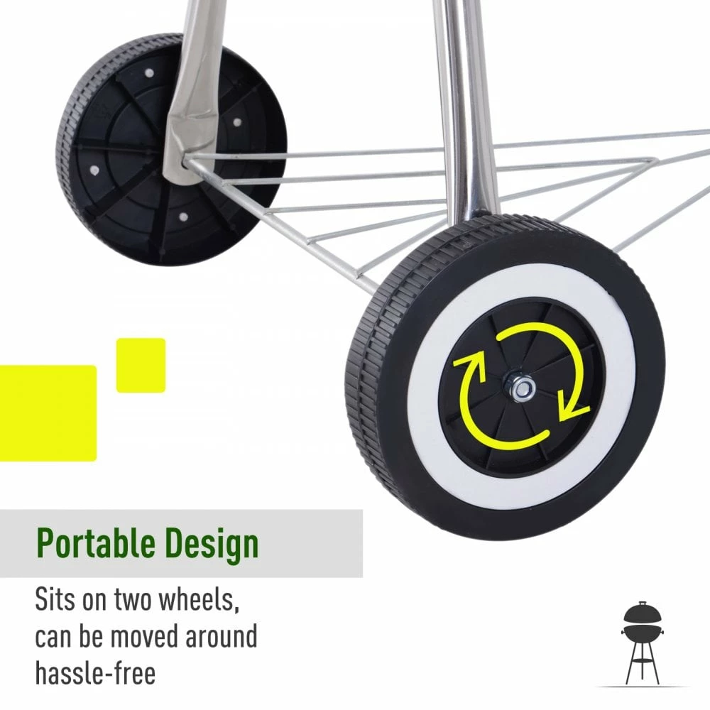 Bring your garden alive in the summer with this grill from Outsunny. Made from steel for durability for years to come, the lid is covered with porcelain enamel to provide even heat resistance up to 500°, allowing you to cook food quickly, with air vents for constant heat control without lifting the lid. With a generously sized grill, you are able to cook a whole host of food, and its one-touch’ cleaning system means you can clean the ash up quickly and easily to save you time and unnecessary effort. Three stainless steel legs provide strength and stability, with two wheels to move the unit around easily if you wish. With a convenient bottom shelf and a wooden handle for safety whilst cooking, this mini grill really has it all.