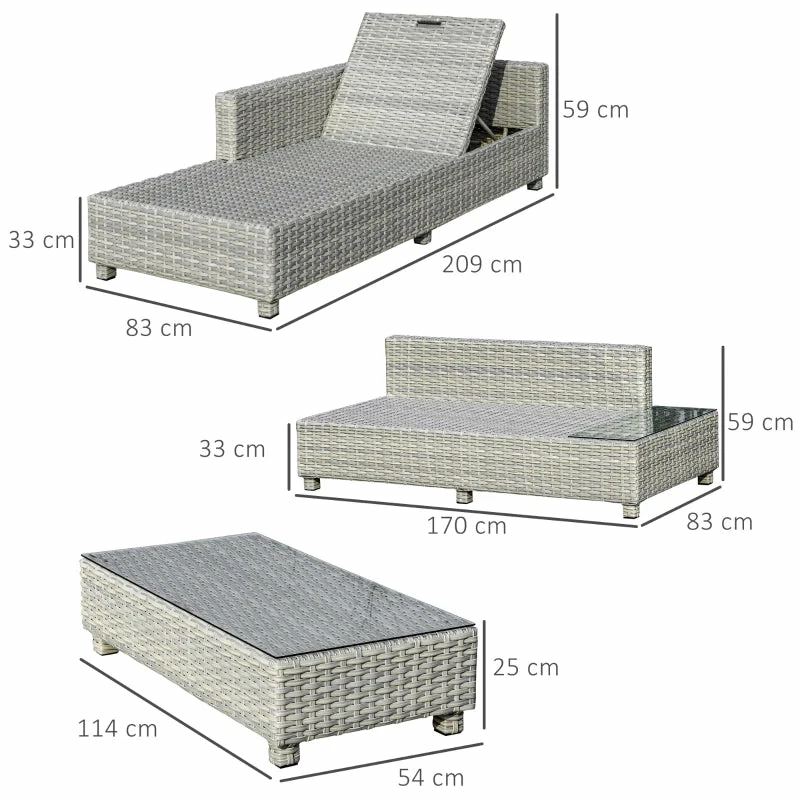 - 3-piece outdoor rattan sofa set come with a chaise lounge, double sofa and a tea table