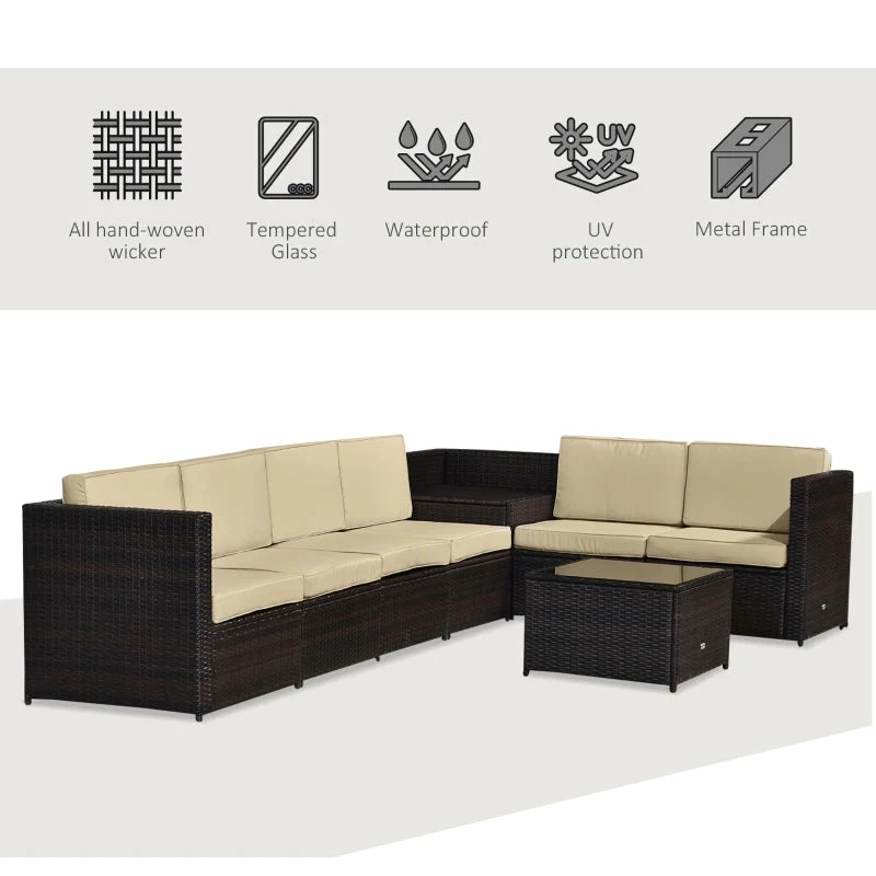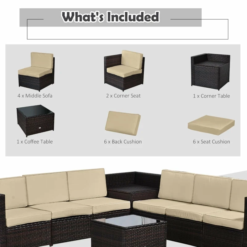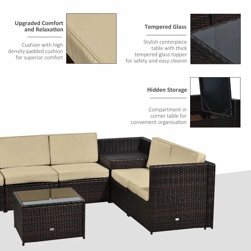 Make the most of the warm weather with this eight-piece garden rattan furniture set from Outsunny. Its open design is also great for combining two or more sets together in your café, restaurant or business to allow you to cater to larger seating numbers and expanding your outside business revenue. Finished with a hidden storage compartment in the corner table, you’ll never leave the area in a mess, making it ideal for those with busy lifestyles and little time to spare.