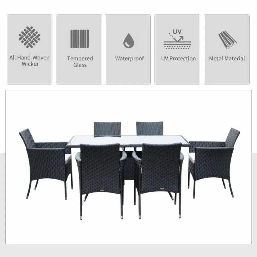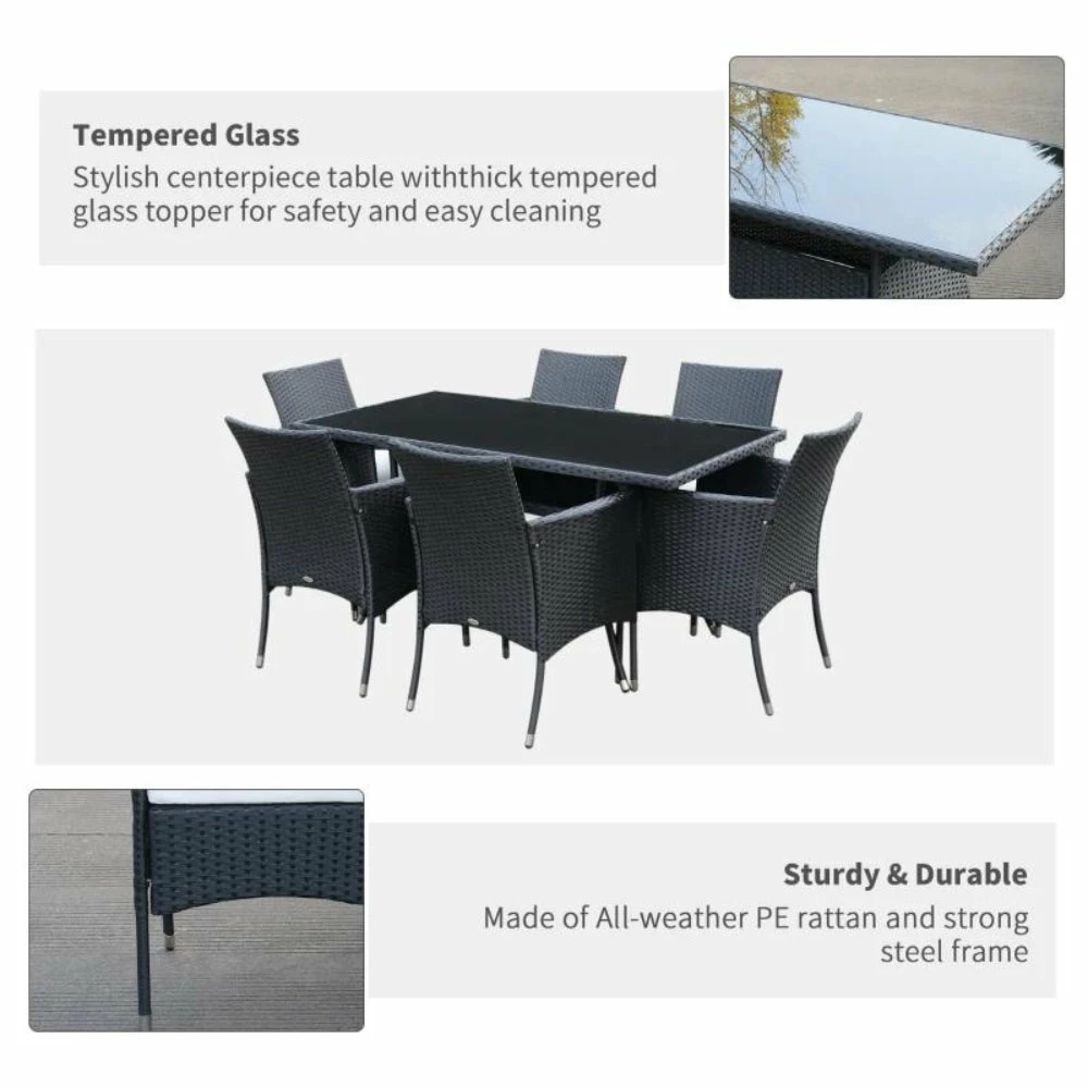 Outsunny Rattan Garden Furniture Dining Set 7 Piece – Black