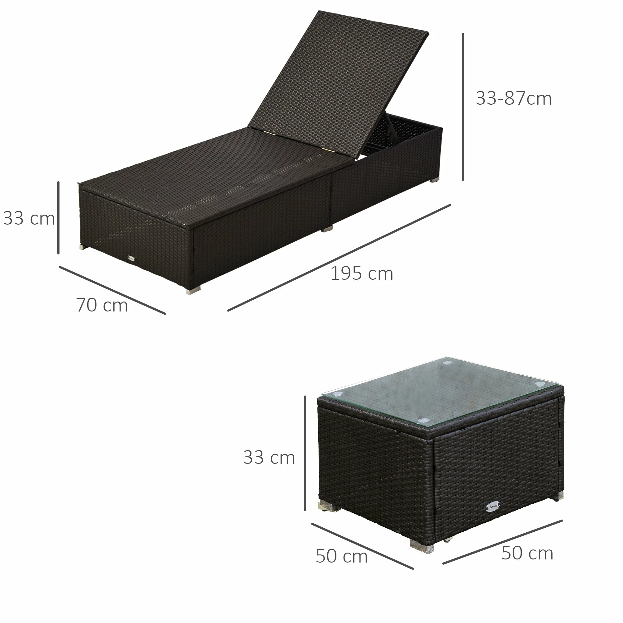 - Weight Capacity: 160kg (each lounger), 50kg (table)