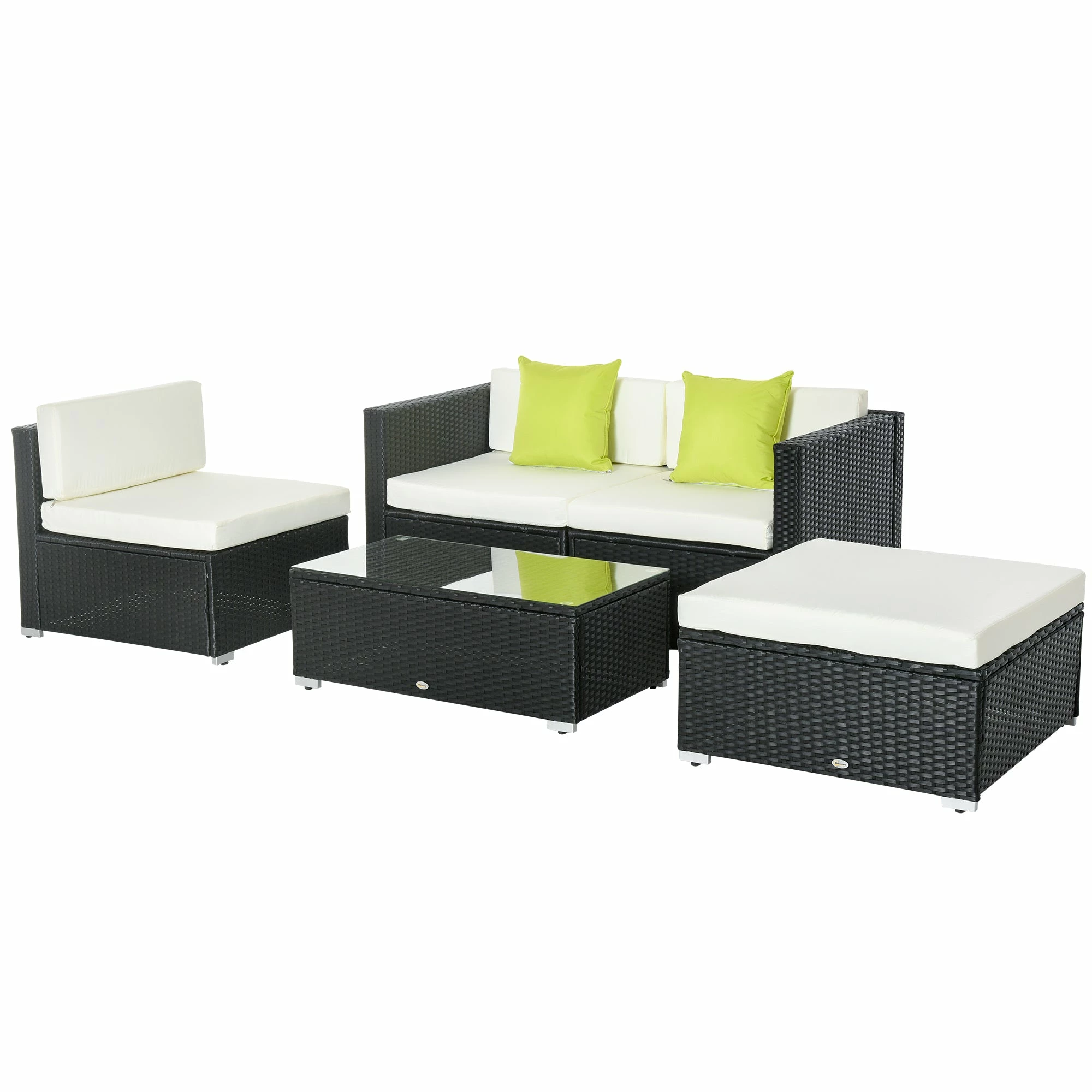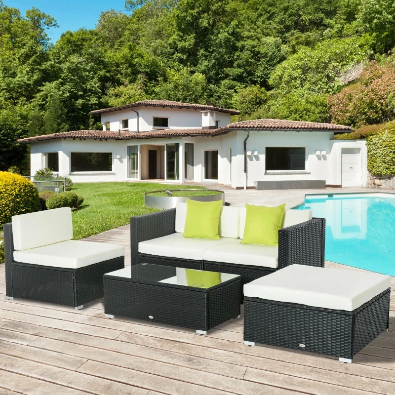 Brighten your backyard with Outsunny 5-Piece cushioned garden rattan furniture wicker sofa sectional patio set and make the outdoors just as inviting as your indoors. Oftentimes, due to uncomfortable seating or simply a lack of furniture, many outdoor environments go underused or ignored completely. Change all that with a simple, in one of our designer garden rattan furniture set. Decorative and functional, the rattan sofa set creates an inviting setting you’ll want to use for years.