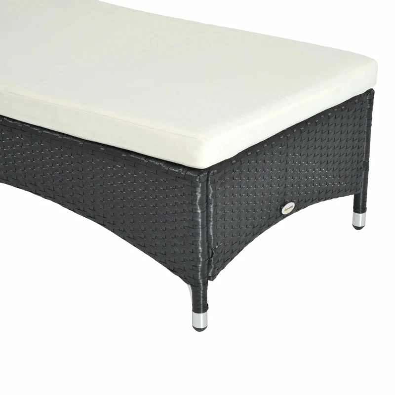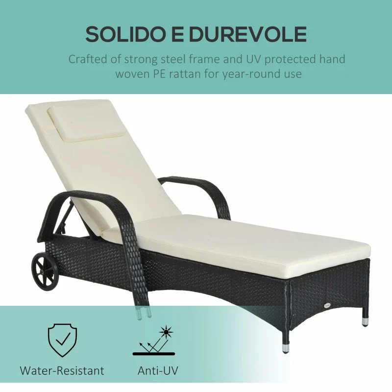 Soak up the sun with this Rattan Lounger from Outsunny. Made from weather-resistant PE wicker, with a strong steel frame underneath, the base is extremely sturdy and will provide you with many years of relaxation outside. On the top there is a thick foam cushion seat with a removable headrest for comfort and the back can be adjusted five different levels to suit your preferences. It is finished with two wheels to you can move it easily, whenever you wish.