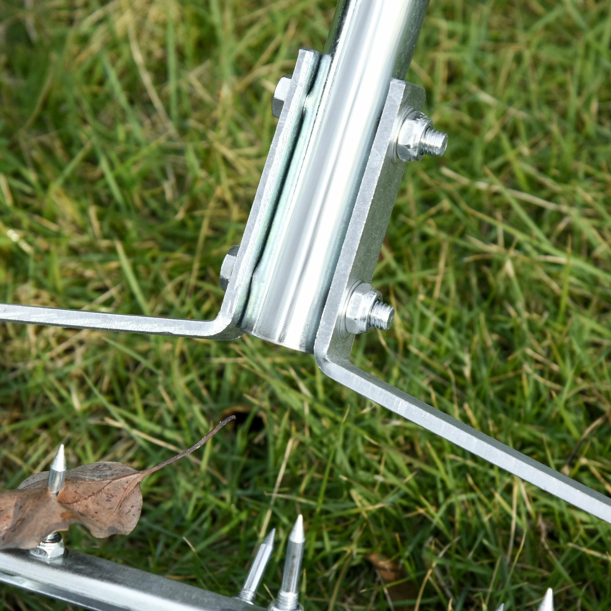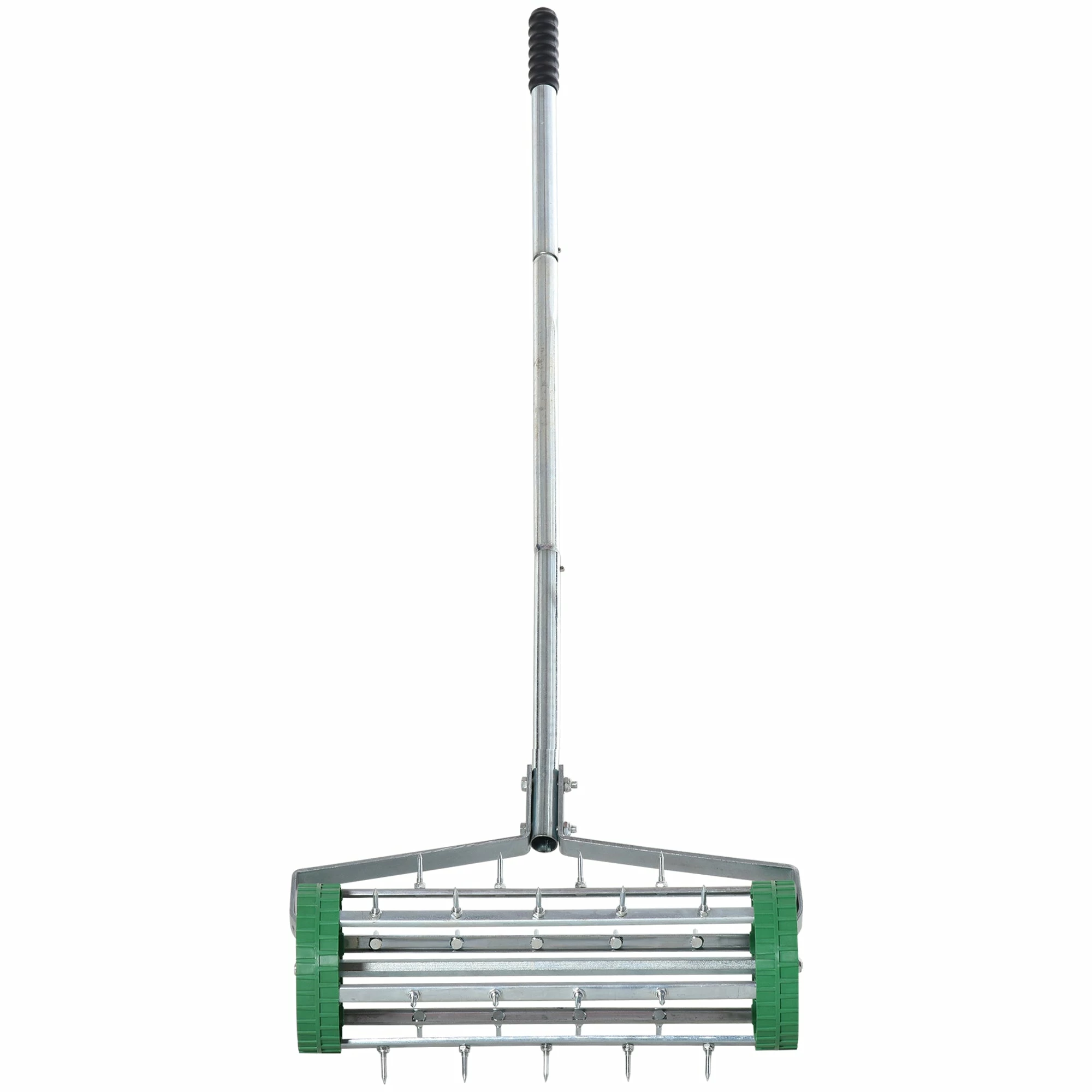 This lawn aerator helps your grass get nutrients. Regular aeration promotes a healthier lawn, better water drainage. With adjustable handle and rotating nails, it’s made of galvanized metal and plastic. Get the most out of your lawn with this tool.
