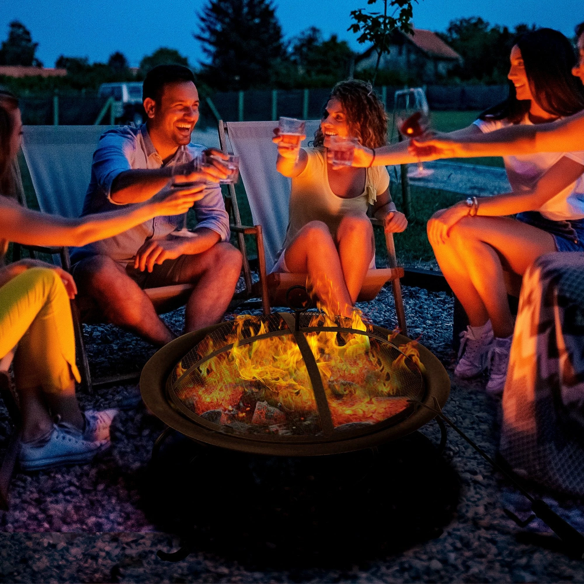 Features: – Great addition to garden, patio, park, and backyard and so on ; – Solid and sturdy metal construction for long term use ; – 360-degree fire view and elevated fire platform for easy operation ; – Paint can withstand high temperature of 500? ; – Top cover is easy to lifted with a handle ; – Creates cosy ambiance and better airflow ; – Suitable for burning wood, carbon block and artificial logs ; – Includes poker ; – Easy to clean and maintenance free ; – Assembly required