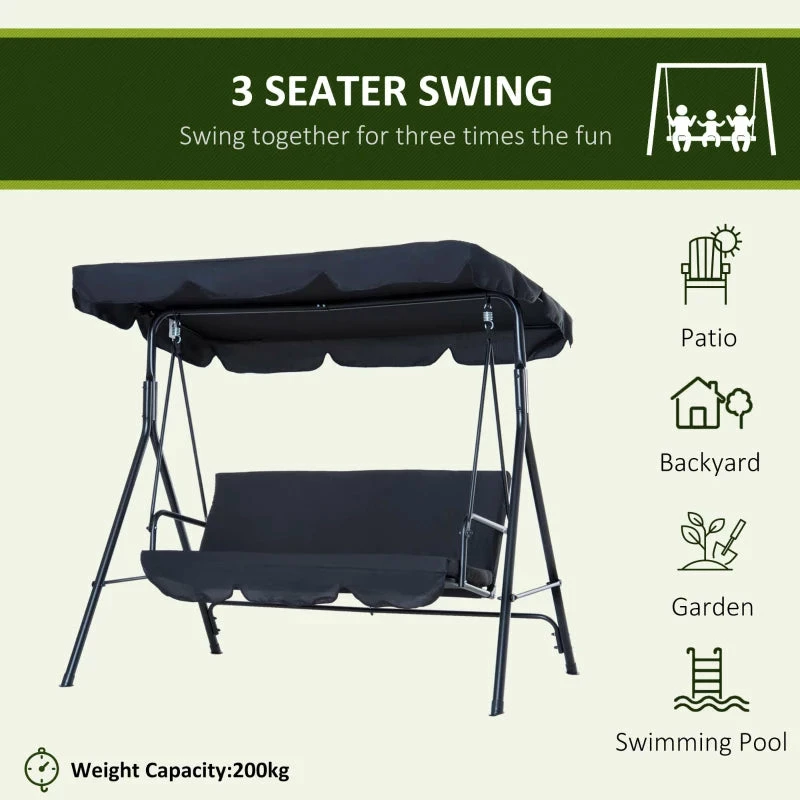 This Outsunny garden swing is the ultimate for relaxation in the comfort. Spacious in size to seat up to three people, the chair provides plenty of room to relax with friends or grab extra room for yourself. Perfect for everyday use in your garden and outdoors, with an adjustable angle overhead canopy to shield you below from sun glare, UV and light-medium showers. A must-have for those looking to liven up their garden just in time for Spring, Summer and beyond.