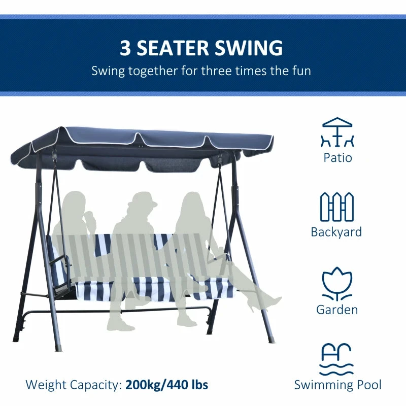 This Outsunny 3 seater garden swing is the ultimate for relaxation in the comfort. Spacious in size to seat up to three people, the chair provides plenty of room to relax with friends or grab extra room for yourself. Perfect for everyday use in your garden and outdoors, with an adjustable angle overhead canopy to shield you below from sun glare, UV and light to medium showers. A must-have for those looking to liven up their garden just in time for Spring, Summer and beyond.
