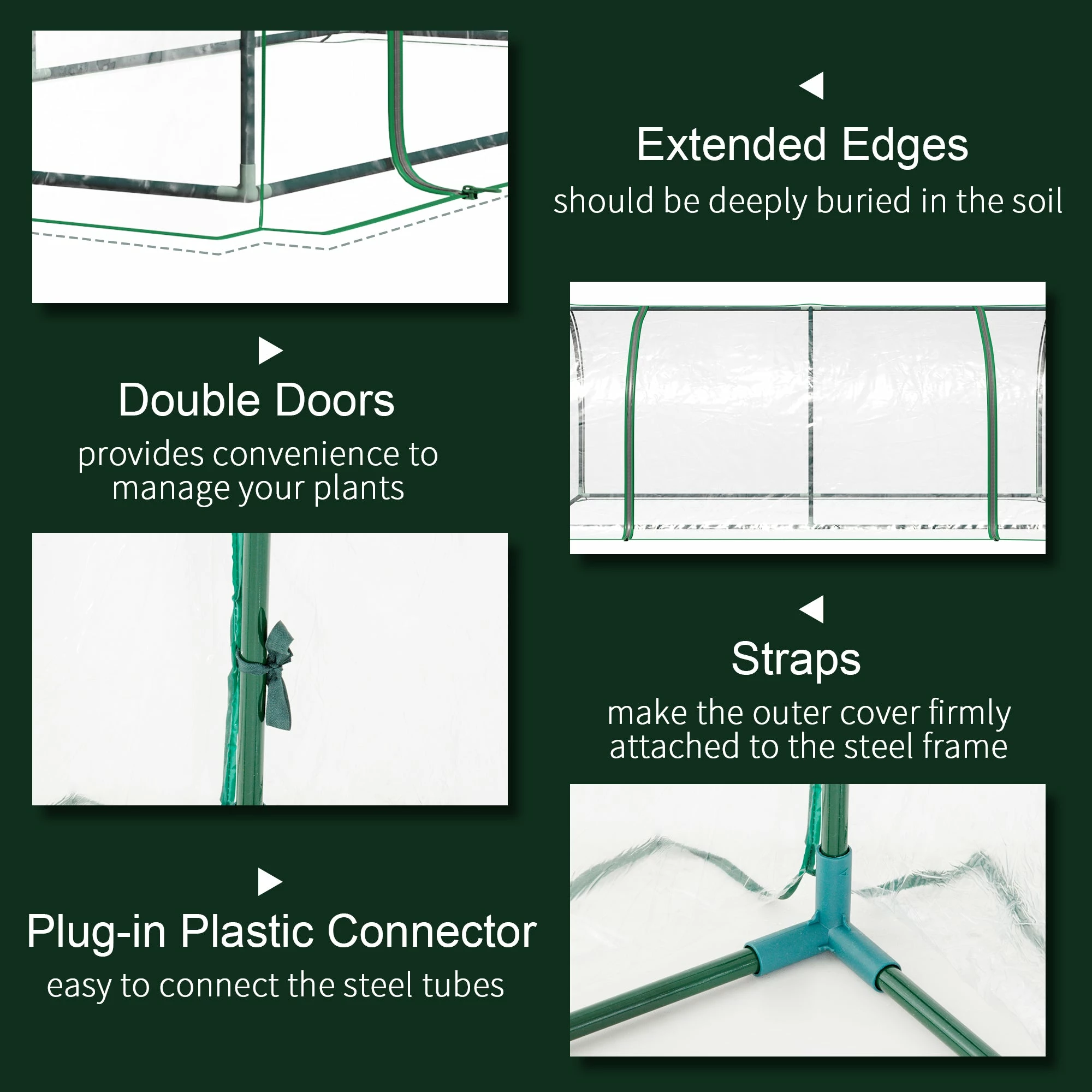 This open portable greenhouse utilizes lightweight, yet sturdy, PE coverings built over a powder-coated steel frame. The combination of these two elements is an incredibly durable final product that can be moved from location to location, fitting in tight spaces as available. The zipper door allows for easy access and ventilation while it also can be sealed in to maintain the internal climate. Start your backyard gardening today with this Outsunny greenhouse.
