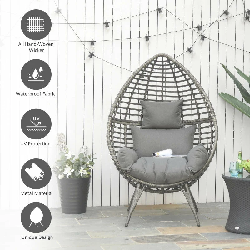 Create the perfect spot in your garden to get away from everything with this lazy chair from Outsunny. Using metal for the base frame to ensure prolonged strength and reliability, it is crafted into a large 156cm x 101cm teardrop-shaped design, with a large and deep base for you to sink back and hide away from the outside world. Hand woven and wrapped around the metal, PE wicker ensures this seat is able to cope with mild weather conditions outside, whilst the four legs with anti-slip footing keep this piece even and steady on the floor all day long. It’s finished with a plush inner cushion for comfort. A place you’ll find hard to get away from once you settle in.