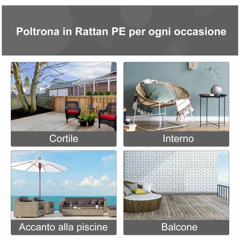 - Strong and durable metal frame, with PE rattan hand-woven all around for mild weather-resistance