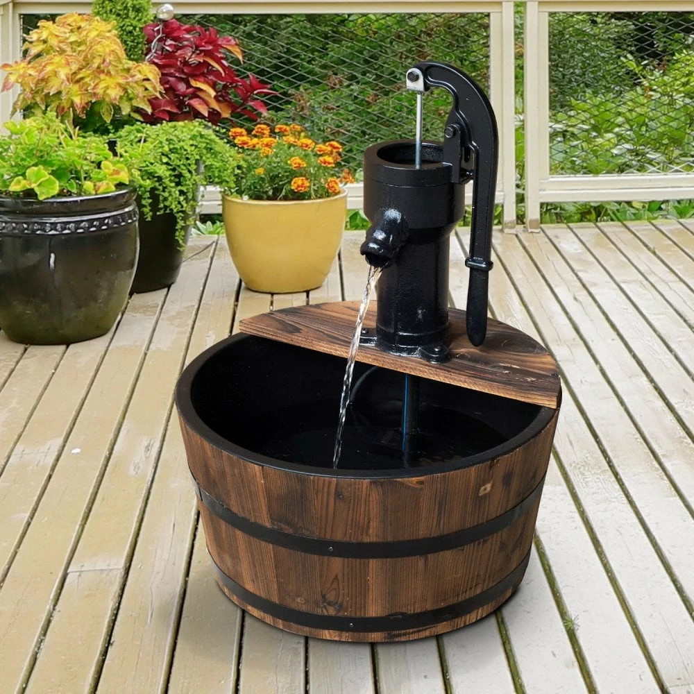 This Outsunny water feature can be great addition to your garden, made from fir wood and shaped in the form of barrels. It features a rustic wooden barrel design with a metal pump that is reminiscent of simpler times and will add a touch of country charm to your outdoor space. This gives a great waterfall effect with a soothing sound.