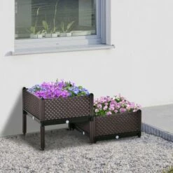 Outsunny 2 Pack Plant Stand With Wheels Mobile Flowerpot Holder For Indoor & Outdoor Use